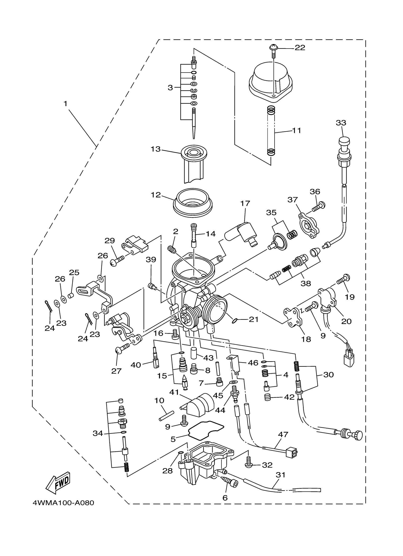 Yamaha XV1600ARC (ROAD STAR CA) 4WMH 2003 CARBURETOR Diagram