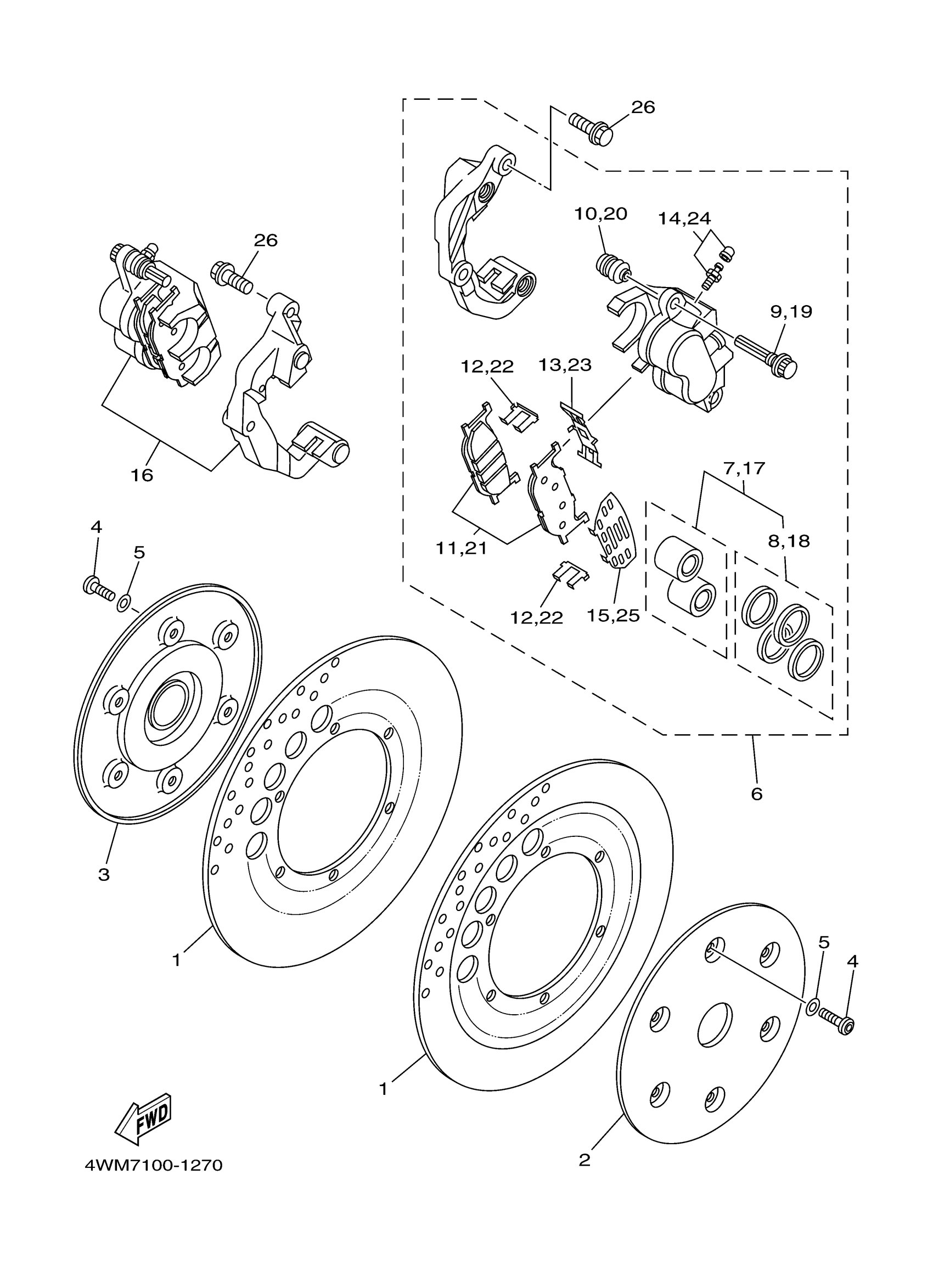 Yamaha XV1600ARC (ROAD STAR CA) 4WMH 2003 FRONT BRAKE CALIPER Diagram