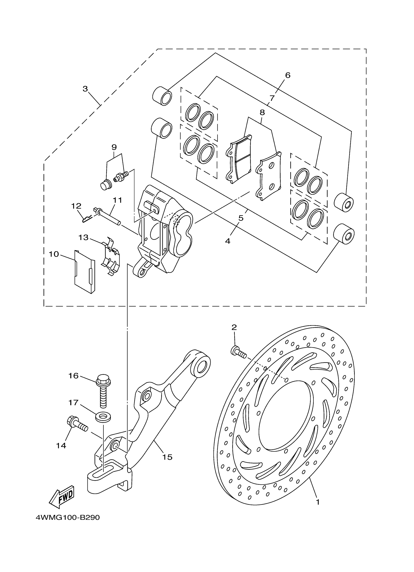 Yamaha XV1600ARC (ROAD STAR CA) 4WMH 2003 REAR BRAKE CALIPER Diagram