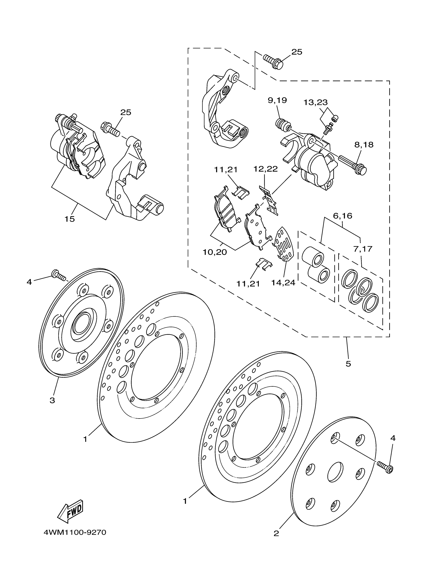 Yamaha XV1600ASMC (ROAD STAR MM CA) 5MB2 2000 FRONT BRAKE CALIPER Diagram