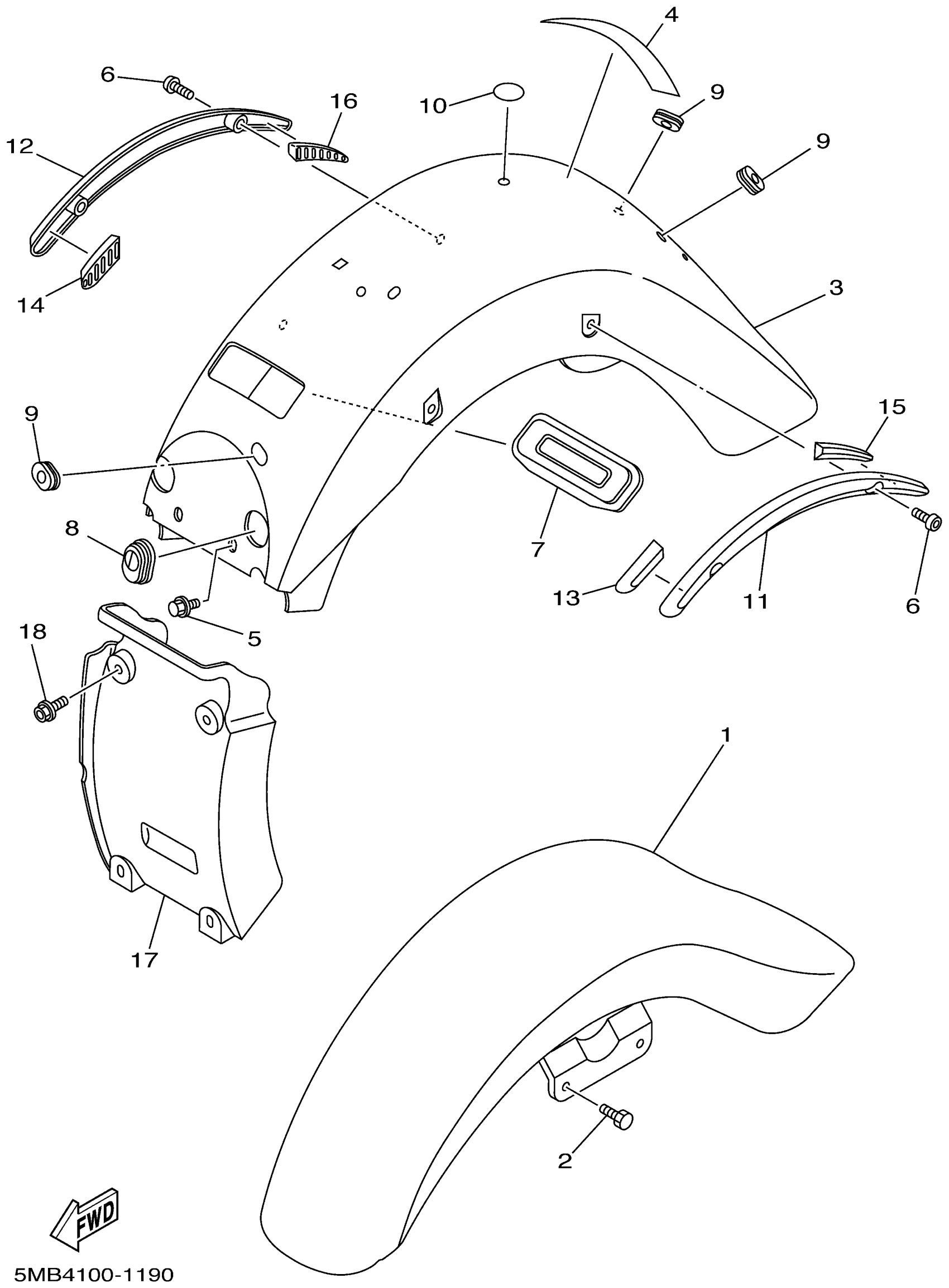 FRONT FENDER COMP. (YAMAHA BLACK)