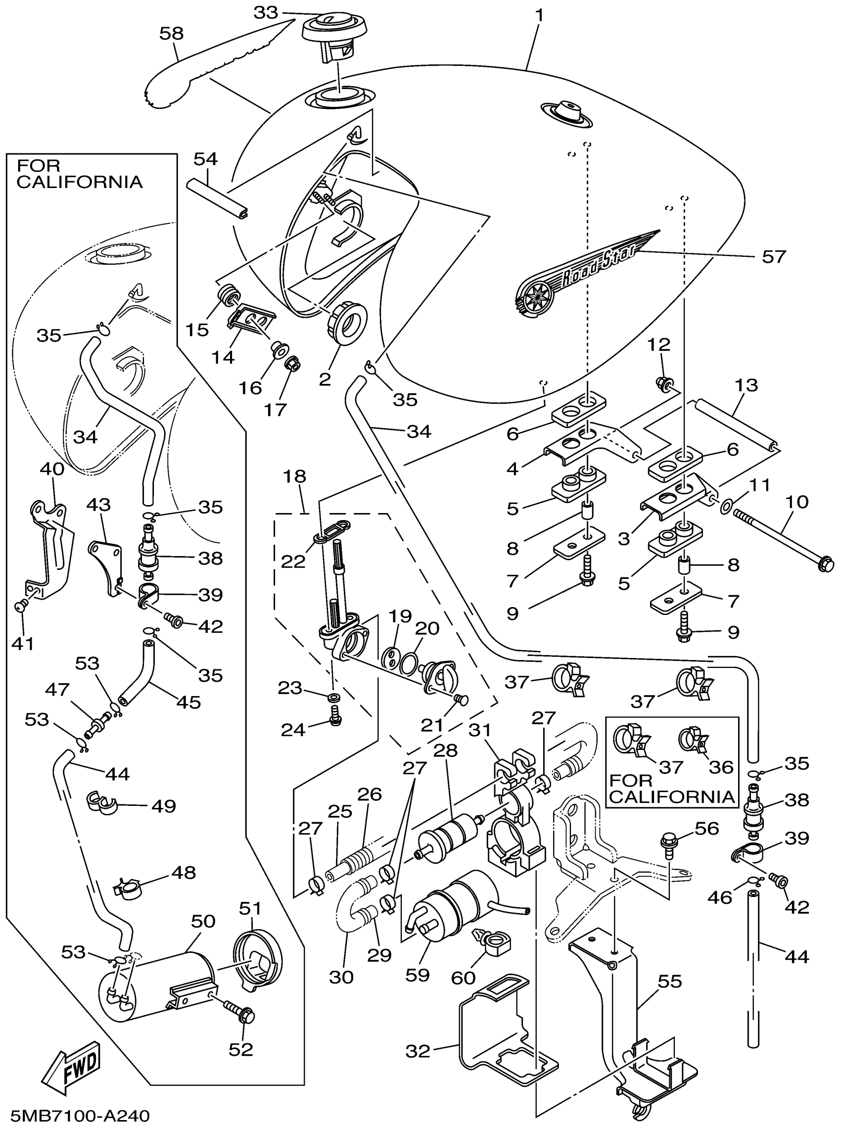 Yamaha XV1600ASPC (ROAD STAR MIDNIGHT STAR CA) 5MB8 2002 FUEL TANK Diagram
