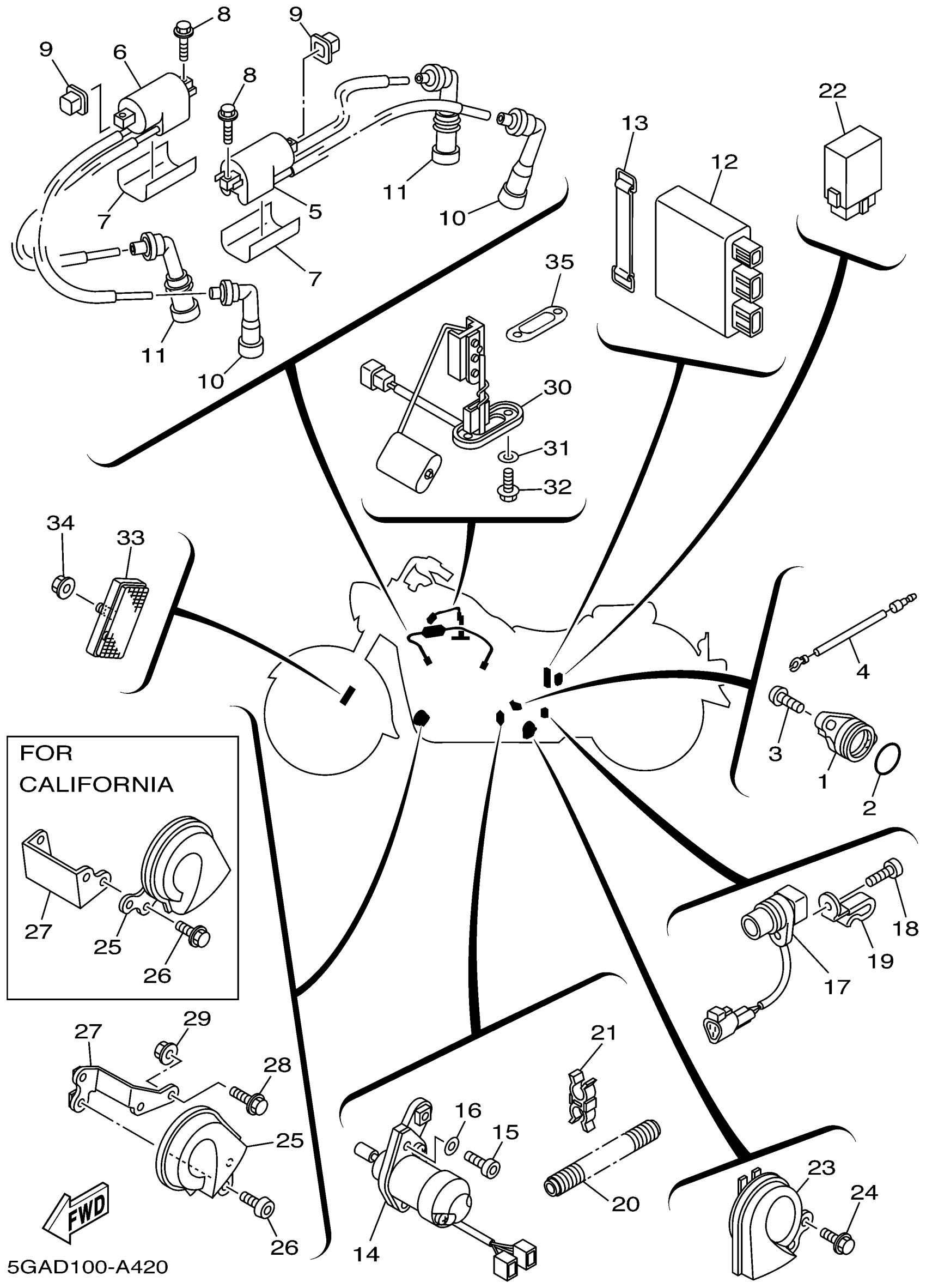 Yamaha XV1600ATPC (ROAD STAR SILVERADO CA) 5GAE 2002 ELECTRICAL 1 Diagram