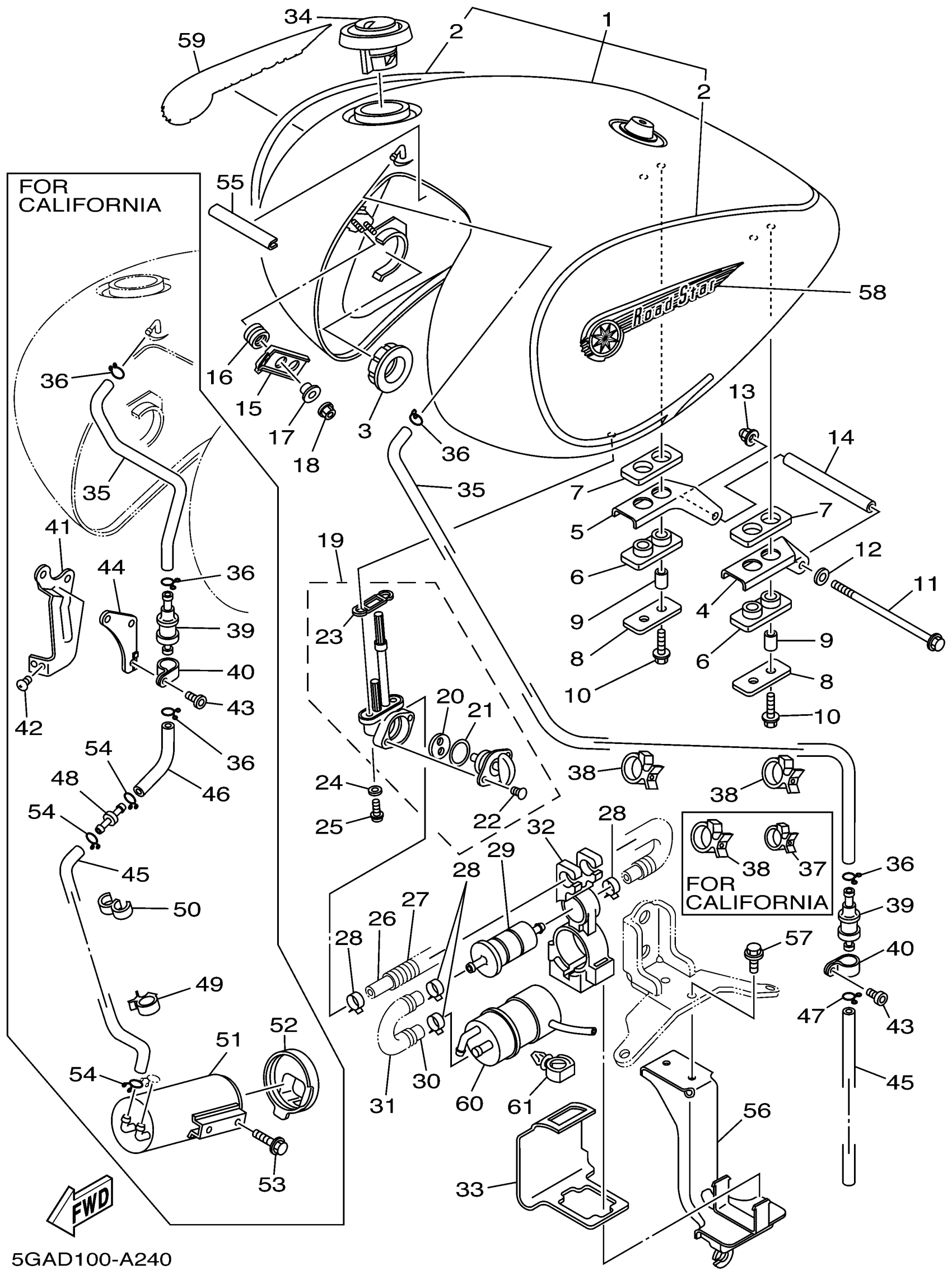 Yamaha XV1600ATPC (ROAD STAR SILVERADO CA) 5GAE 2002 FUEL TANK Diagram