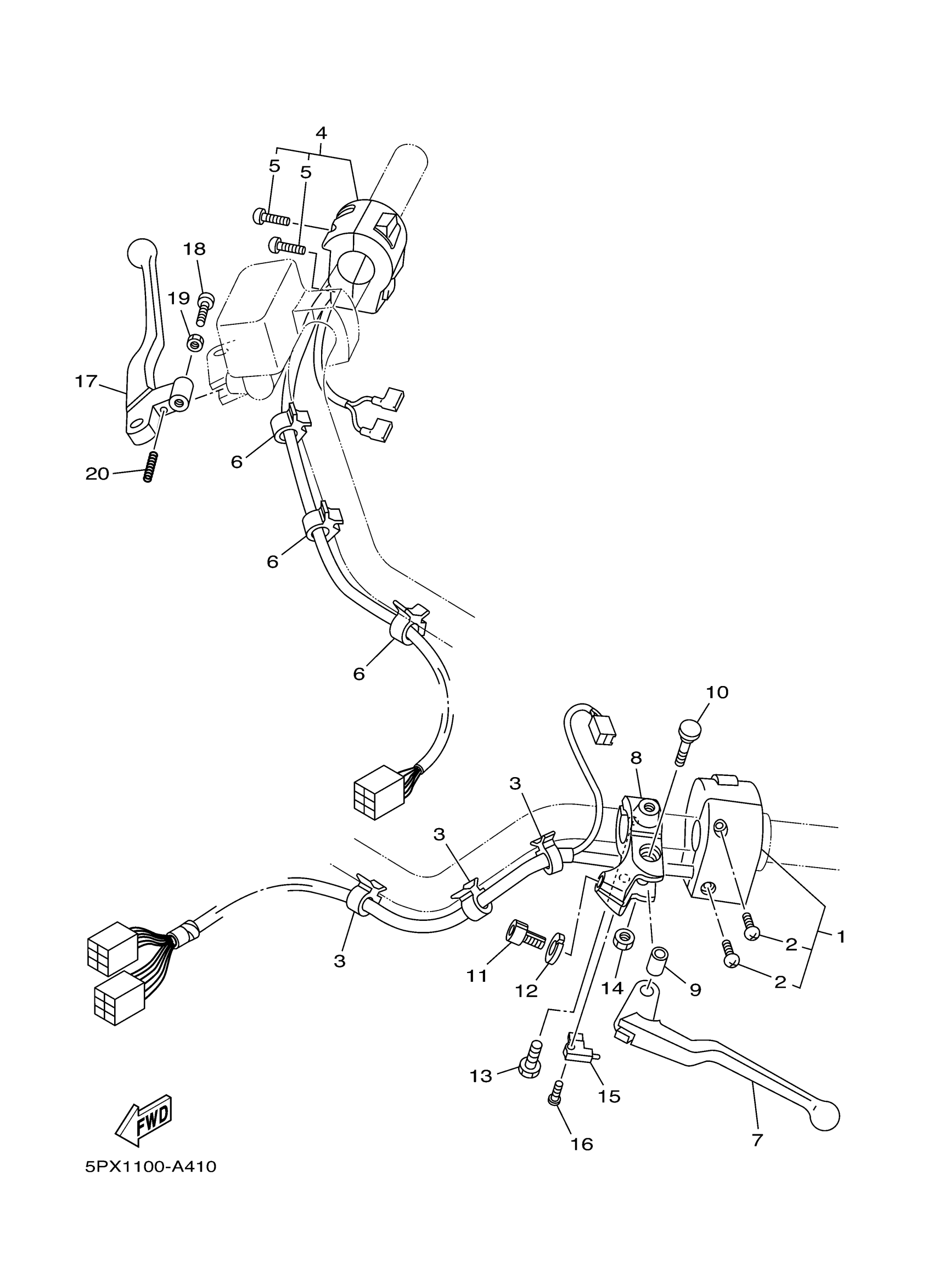 Yamaha XV1700PCRC-B (ROAD STAR WARRIOR CA) 5PX8 2003 HANDLE SWITCH LEVER Diagram