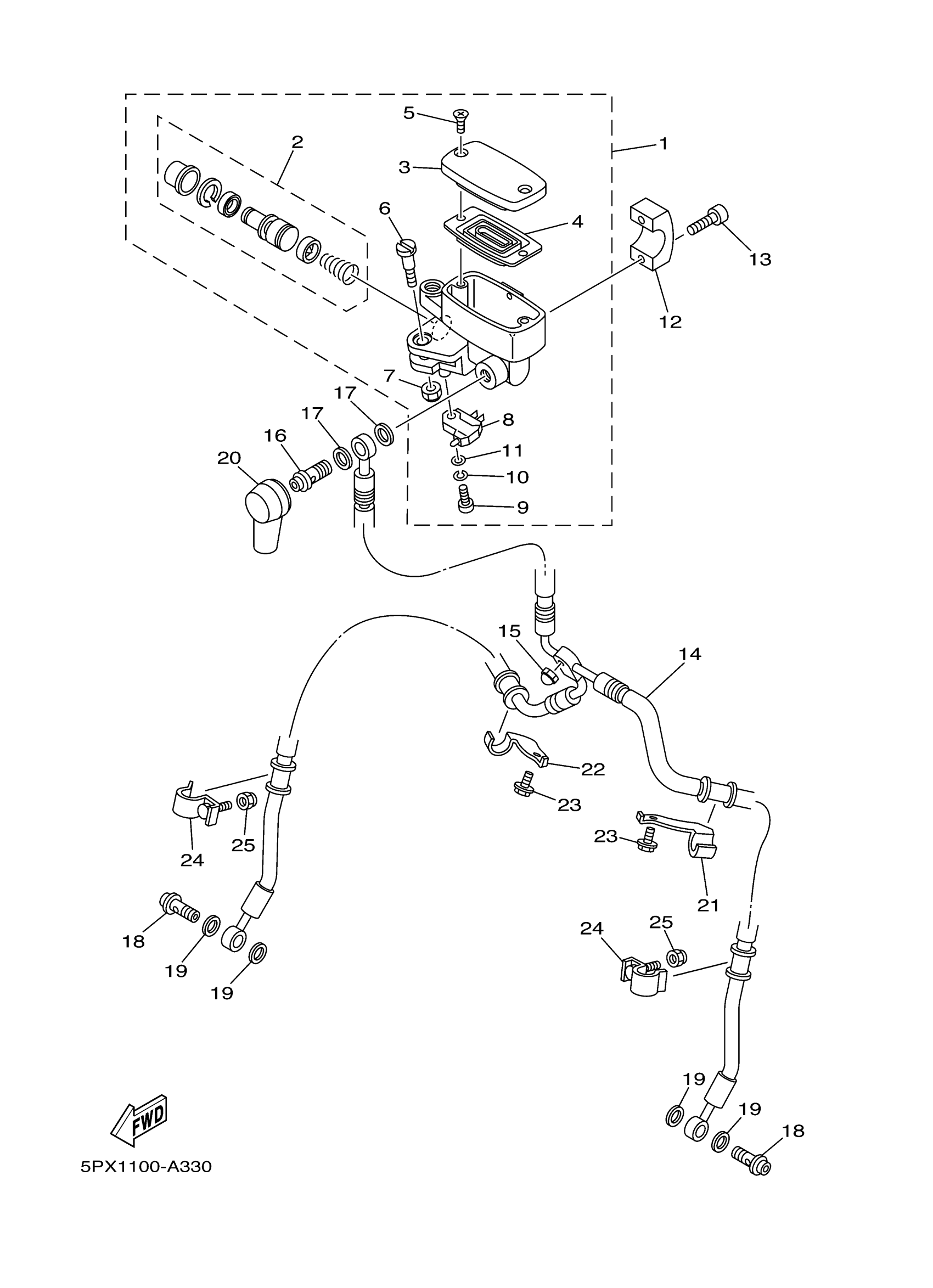 Yamaha XV1700PCRC (ROAD STAR WARRIOR CA) 5PX5 2003 FRONT MASTER CYLINDER Diagram