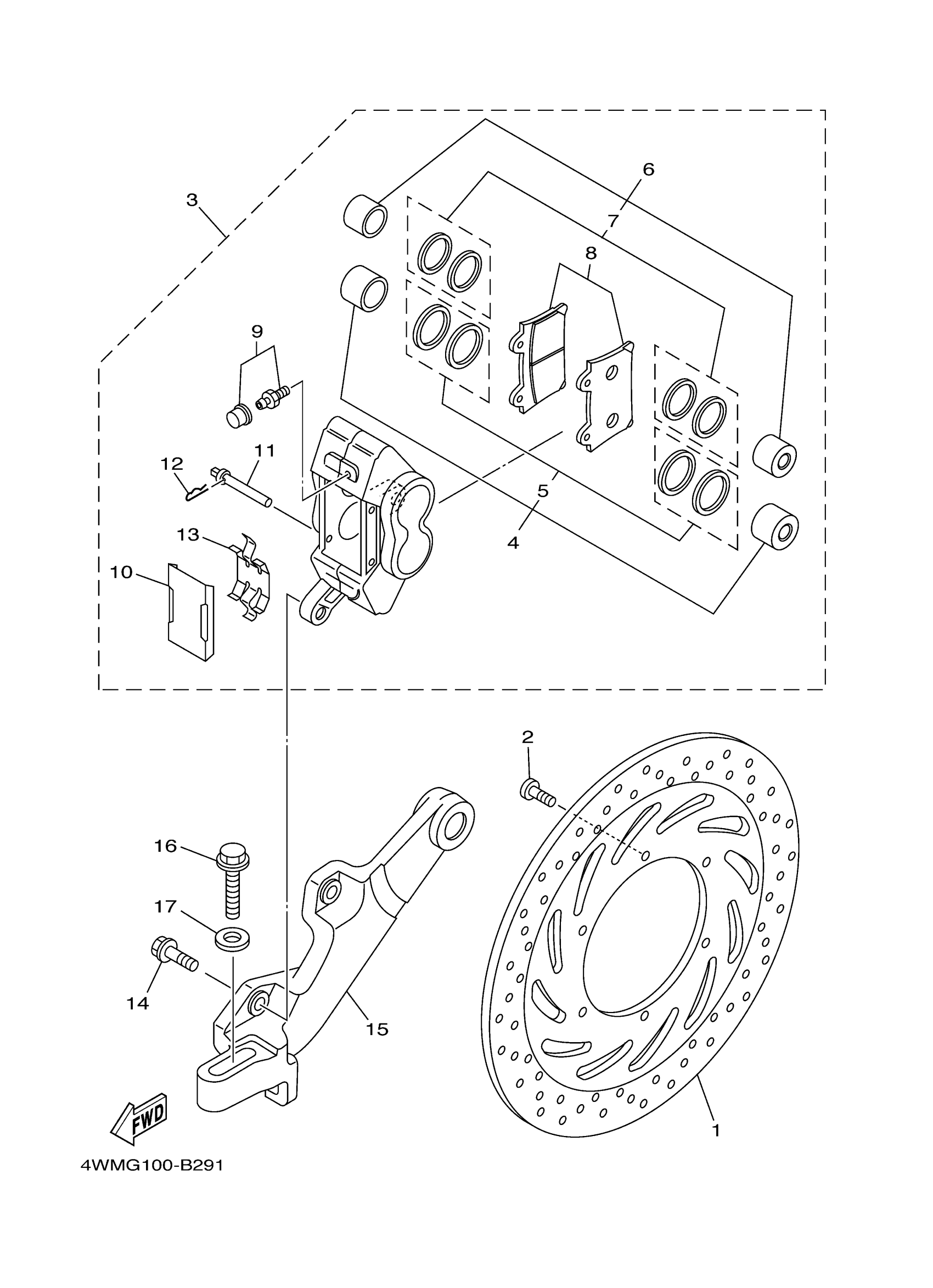 Yamaha XV17ASC (ROAD STAR CA) 5VN2 2004 REAR BRAKE CALIPER Diagram