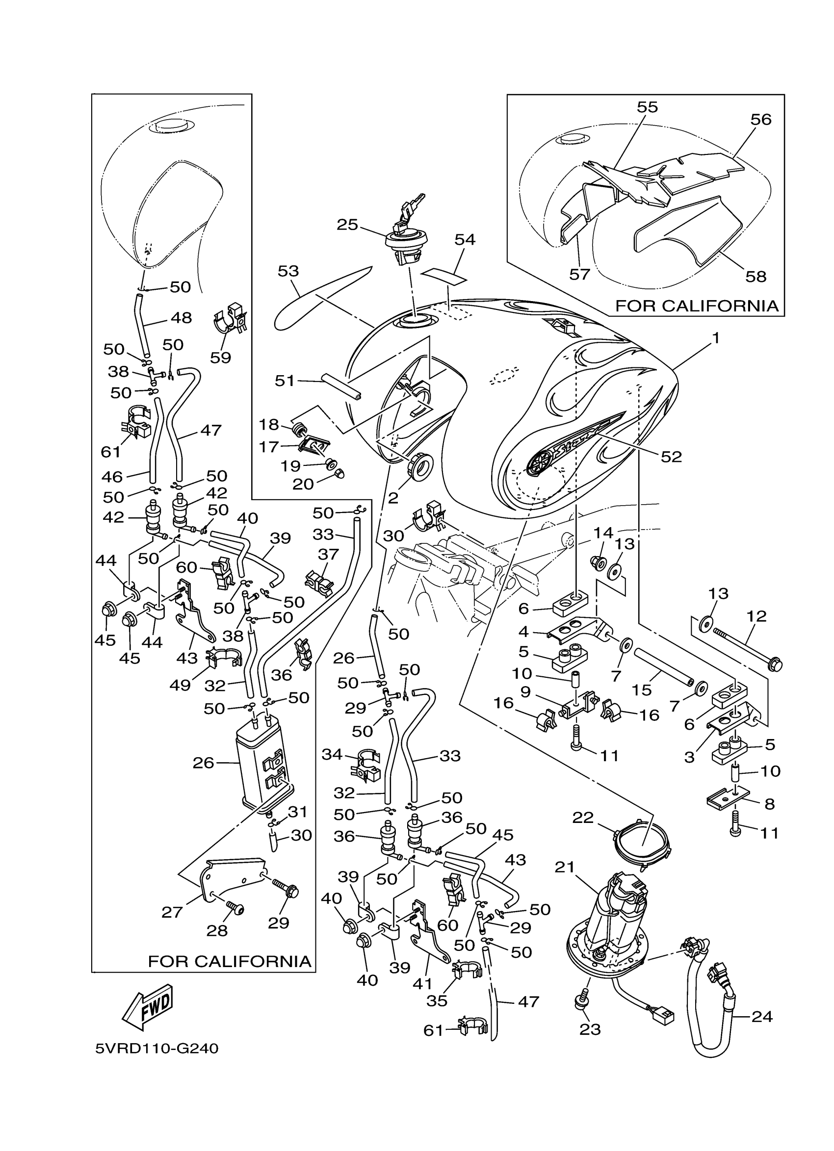 Yamaha XV17ASXSC (ROAD STAR S CA) 5VRE 2008 FUEL TANK Diagram