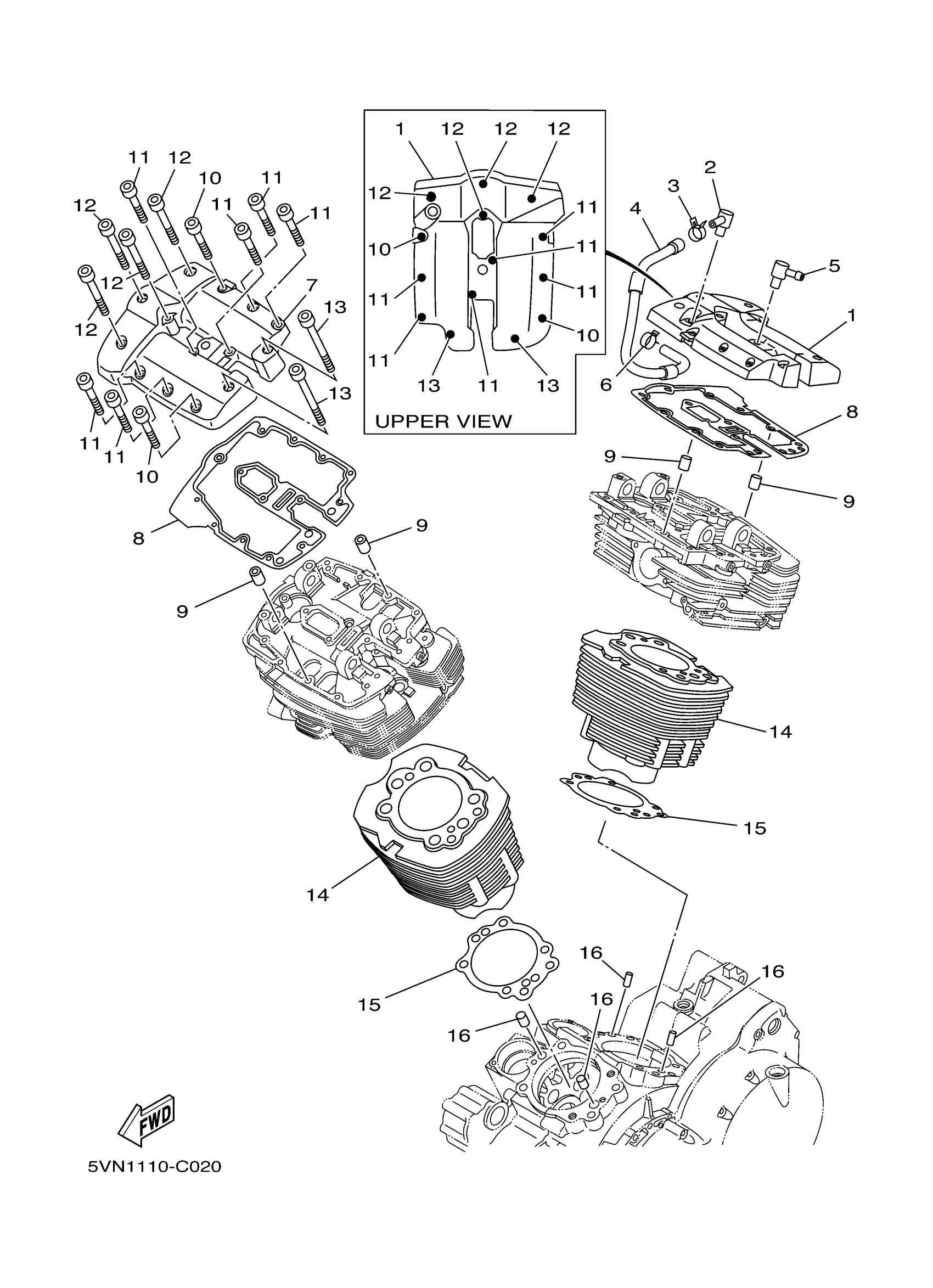 Yamaha XV17ATC (ROAD STAR (spoke wheels) Two-Tone CA) 5VNB 2005 CYLINDER Diagram