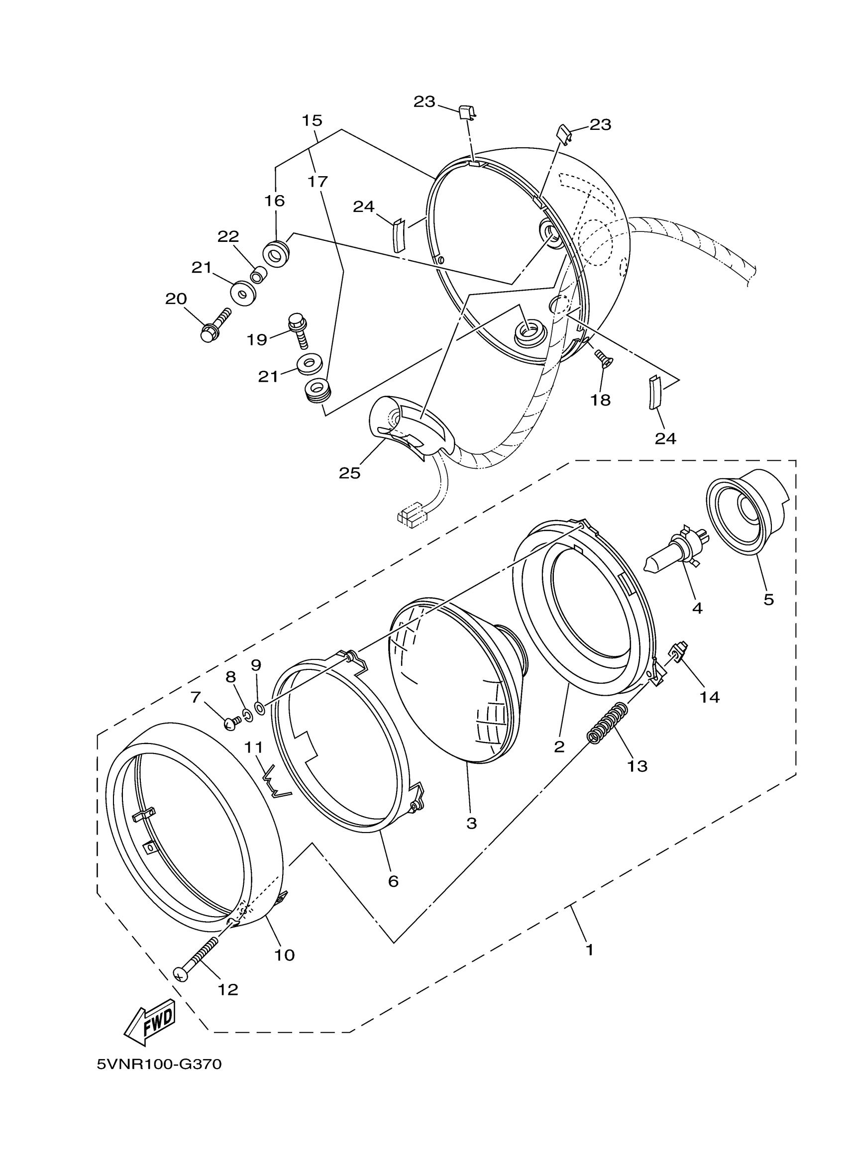 Yamaha XV17ATSAR (ROAD STAR SILVERADO S) 2D9M 2011 HEADLIGHT Diagram