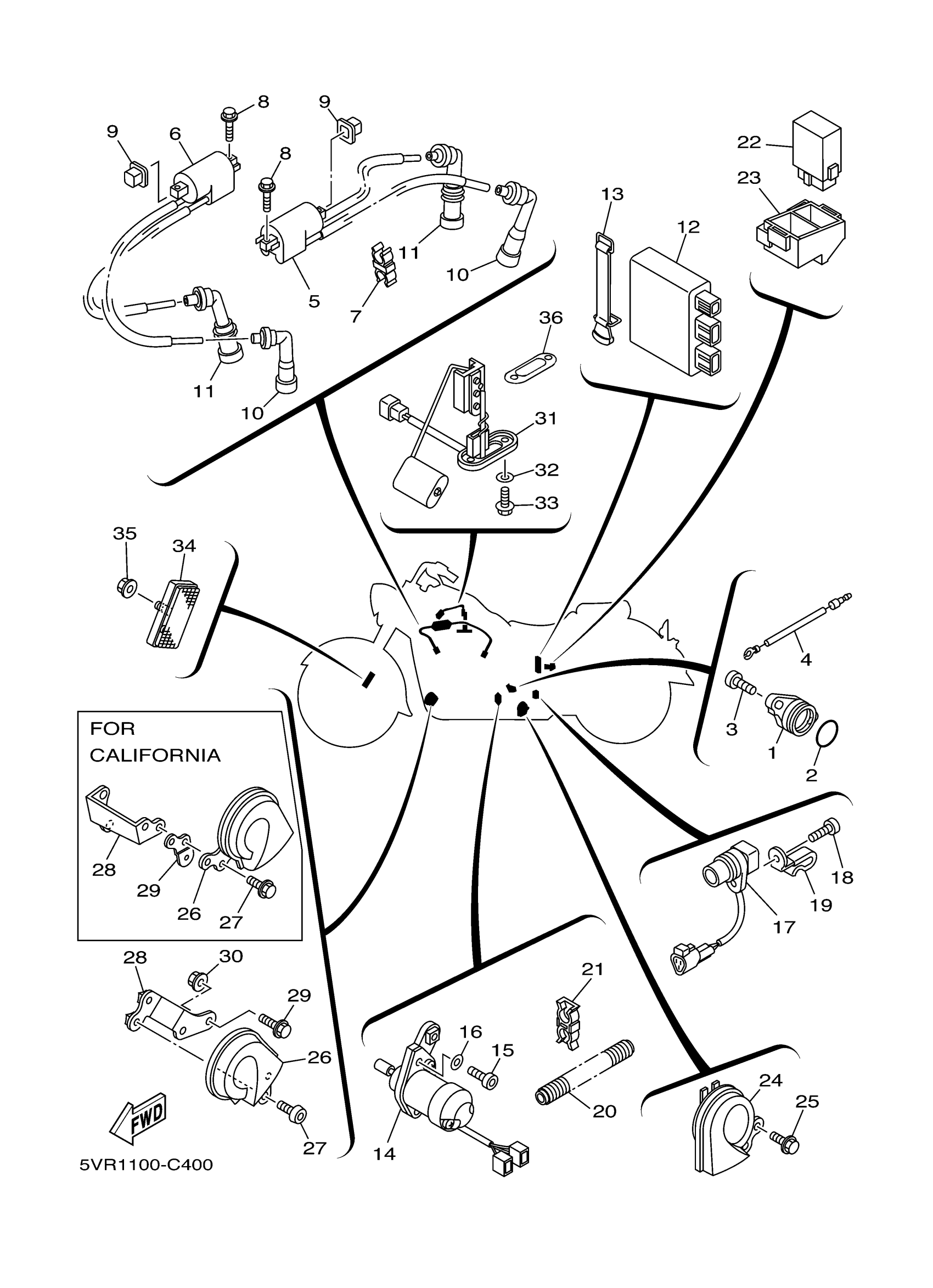 Yamaha XV17ATSC (ROAD STAR SILVERADO CA) 5VP2 2004 ELECTRICAL 1 Diagram