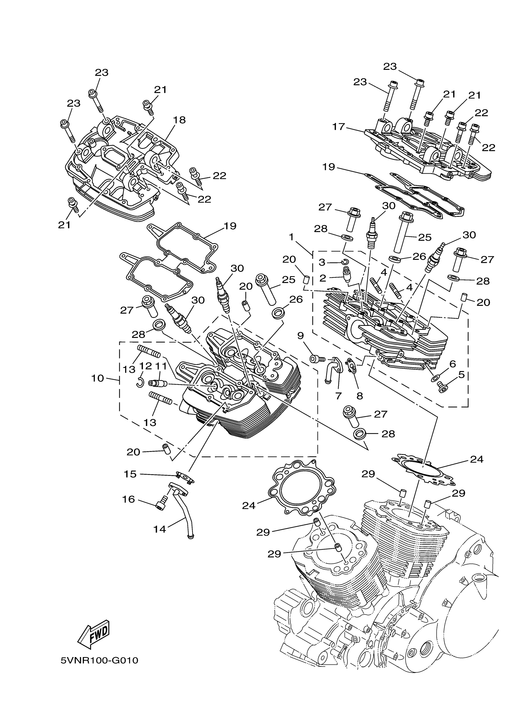 Yamaha XV17ATSZR (ROAD STAR SILVERADO S) 2D9J 2010 CYLINDER HEAD Diagram