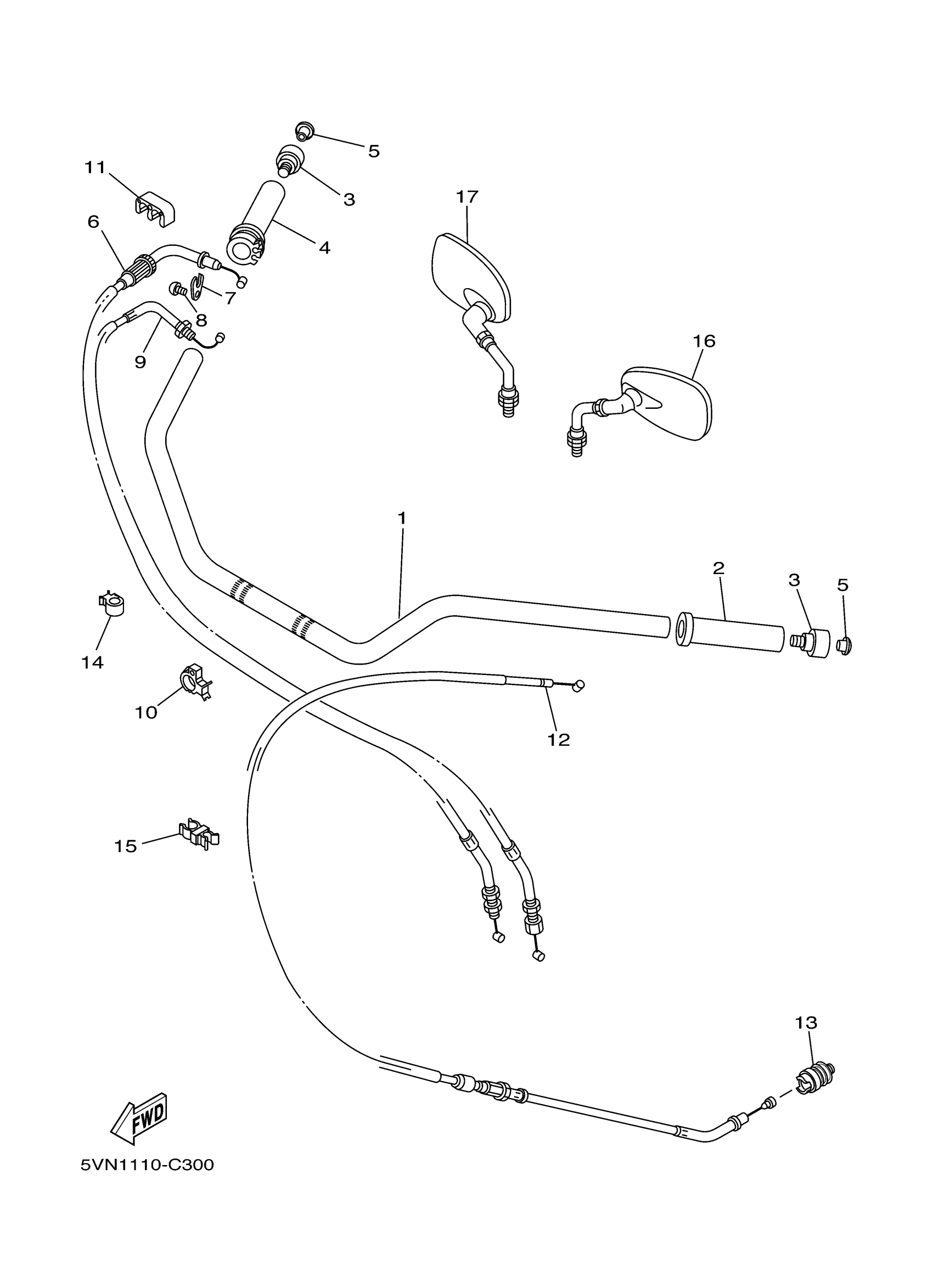 Yamaha XV17ATSZR (ROAD STAR SILVERADO S) 2D9J 2010 STEERING HANDLE CABLE Diagram