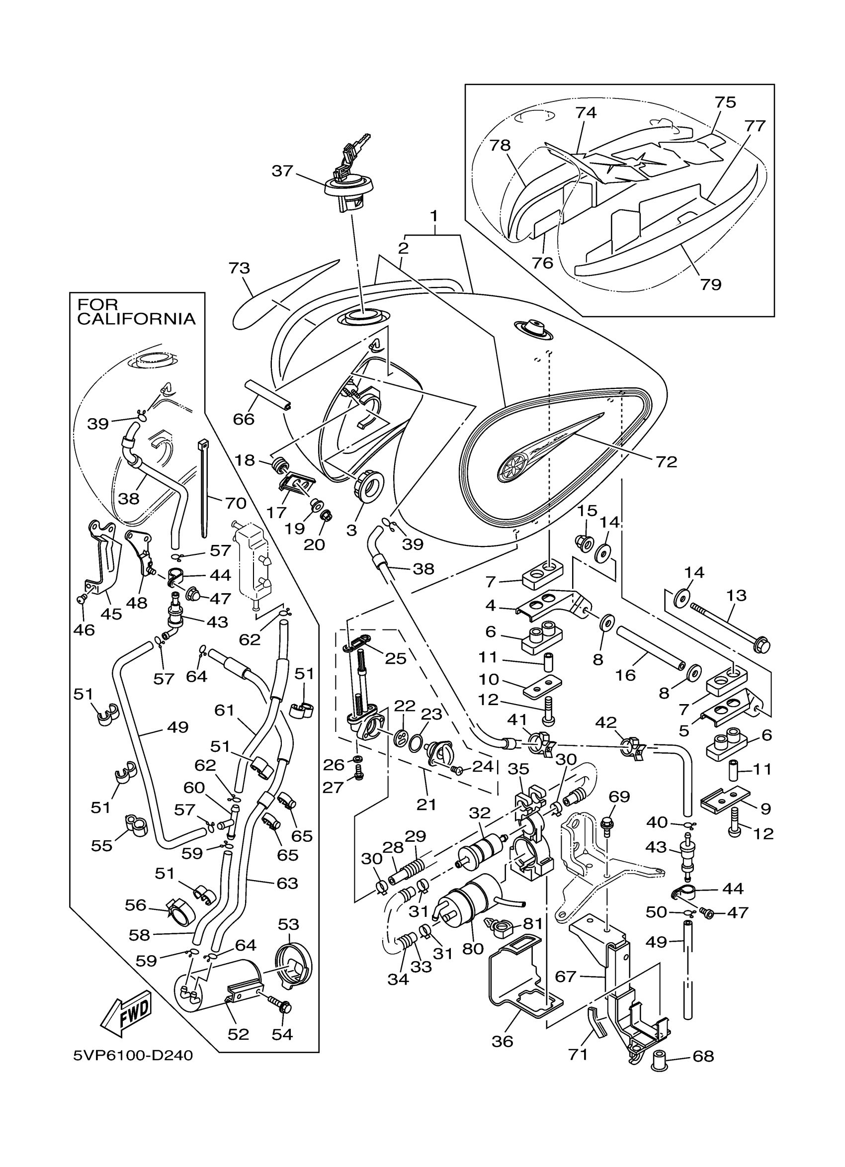 Yamaha XV17ATTC (ROAD STAR SILVERADO Two-Tone CA) 5VP7 2005 FUEL TANK Diagram