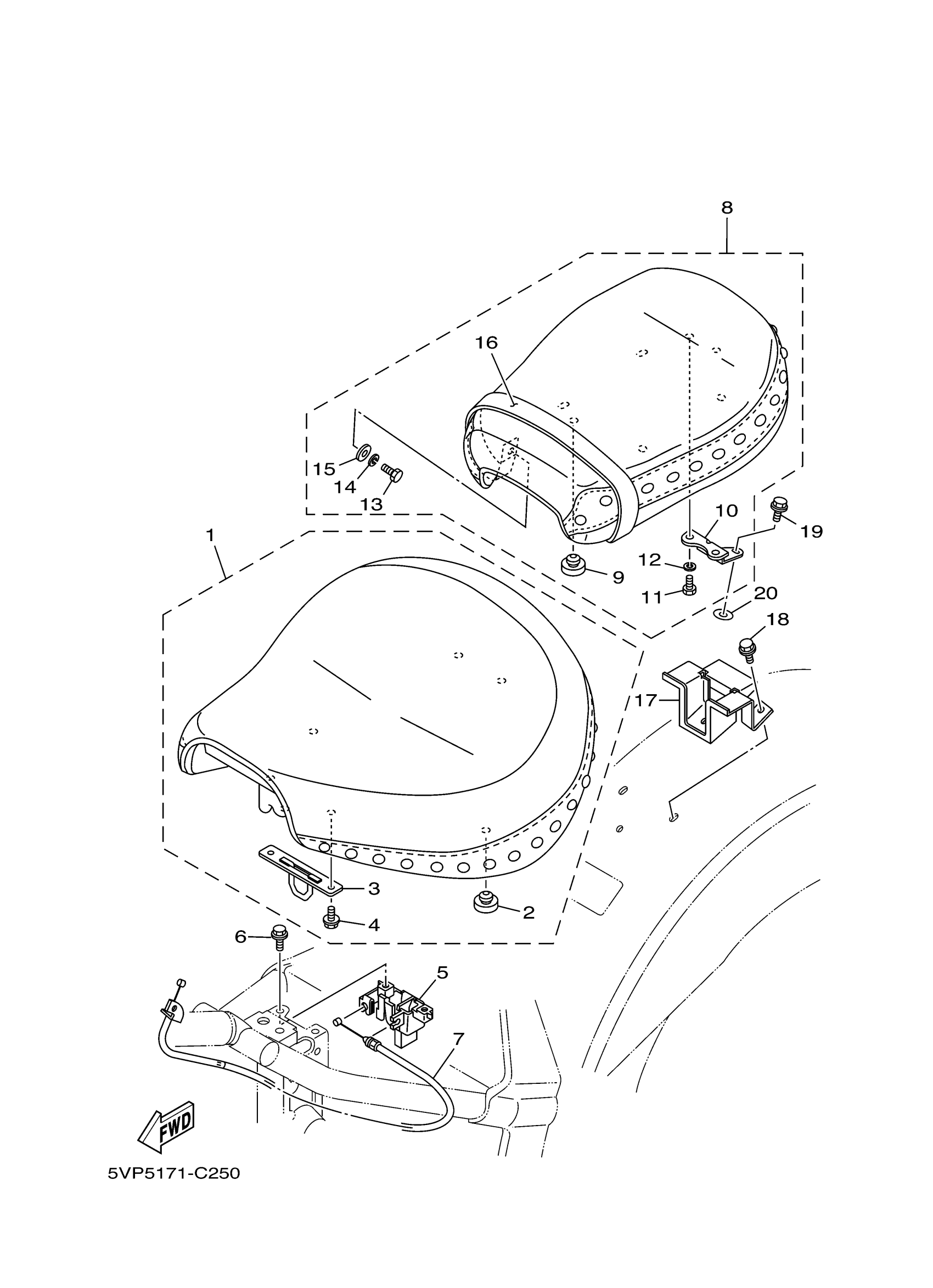 Yamaha XV17ATTC (ROAD STAR SILVERADO Two-Tone CA) 5VP7 2005 SEAT Diagram