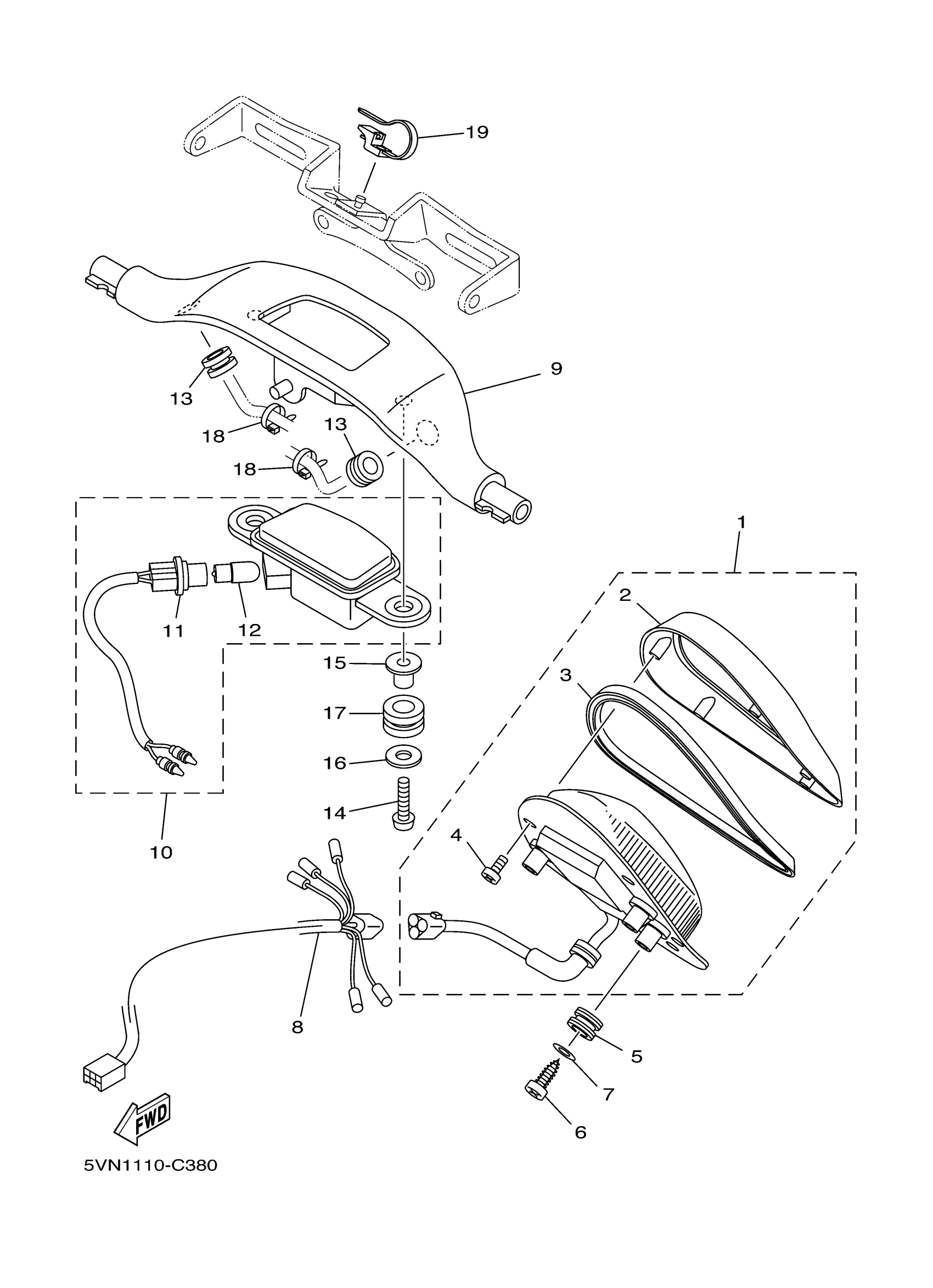 Yamaha XV17ATTC (ROAD STAR SILVERADO Two-Tone CA) 5VP7 2005 TAILLIGHT Diagram