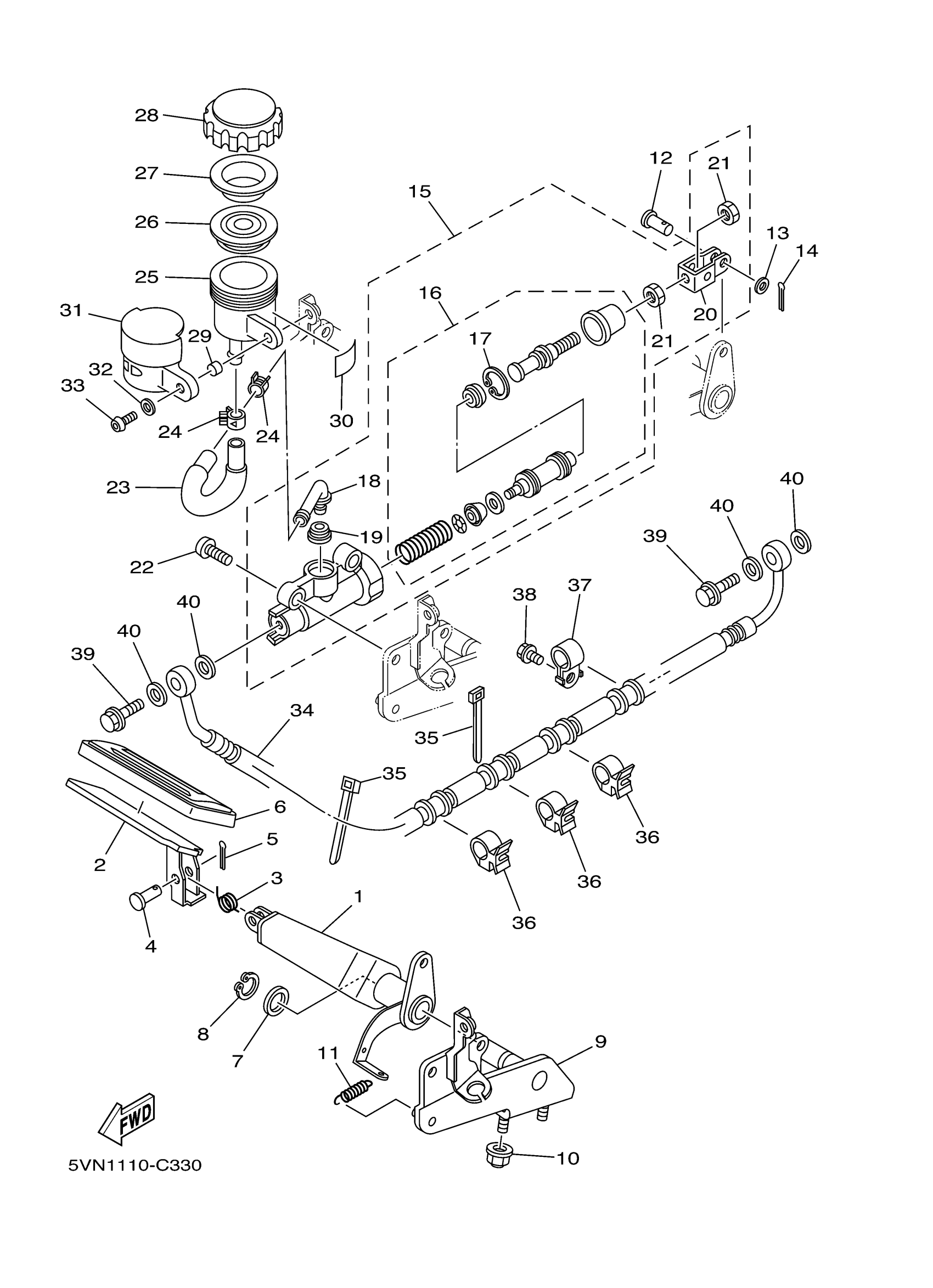Yamaha XV17ATVC (ROAD STAR SILVERADO CA) 5VPB 2006 REAR MASTER CYLINDER Diagram