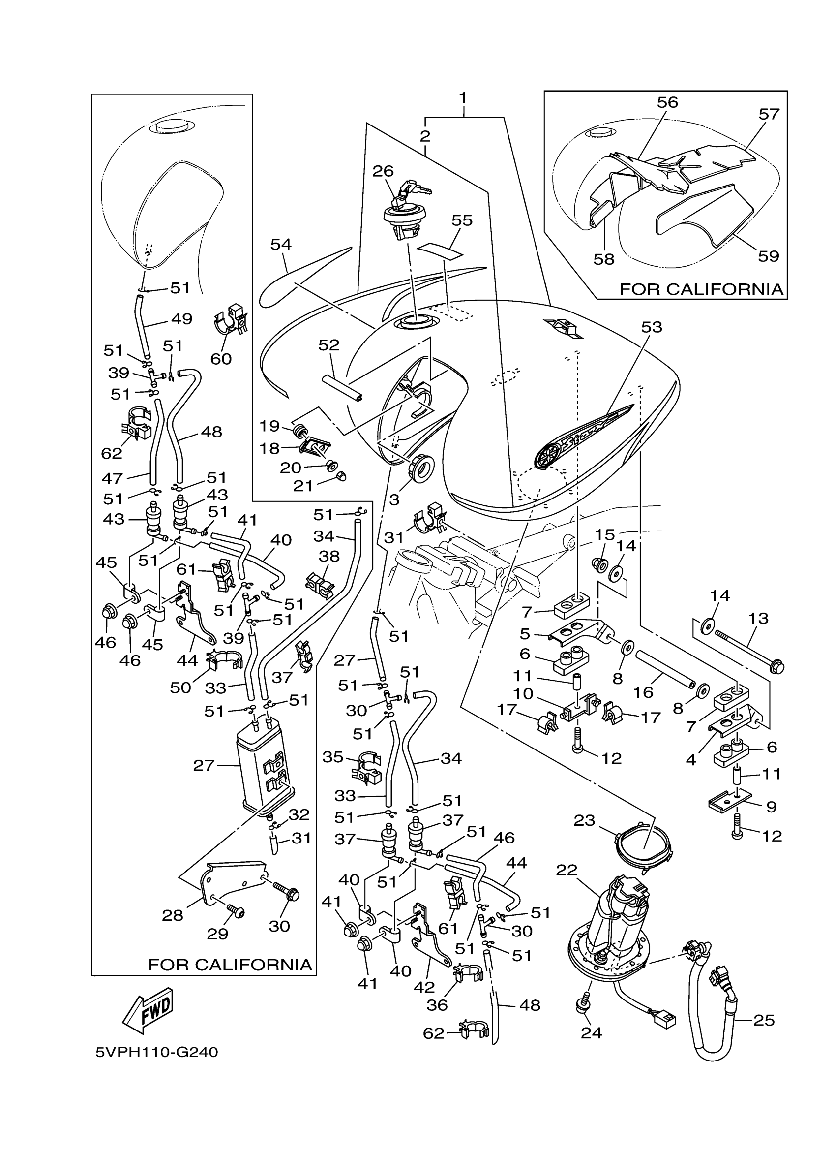 Yamaha XV17ATXL (ROAD STAR SILVERADO) 5VPH 2008 FUEL TANK Diagram
