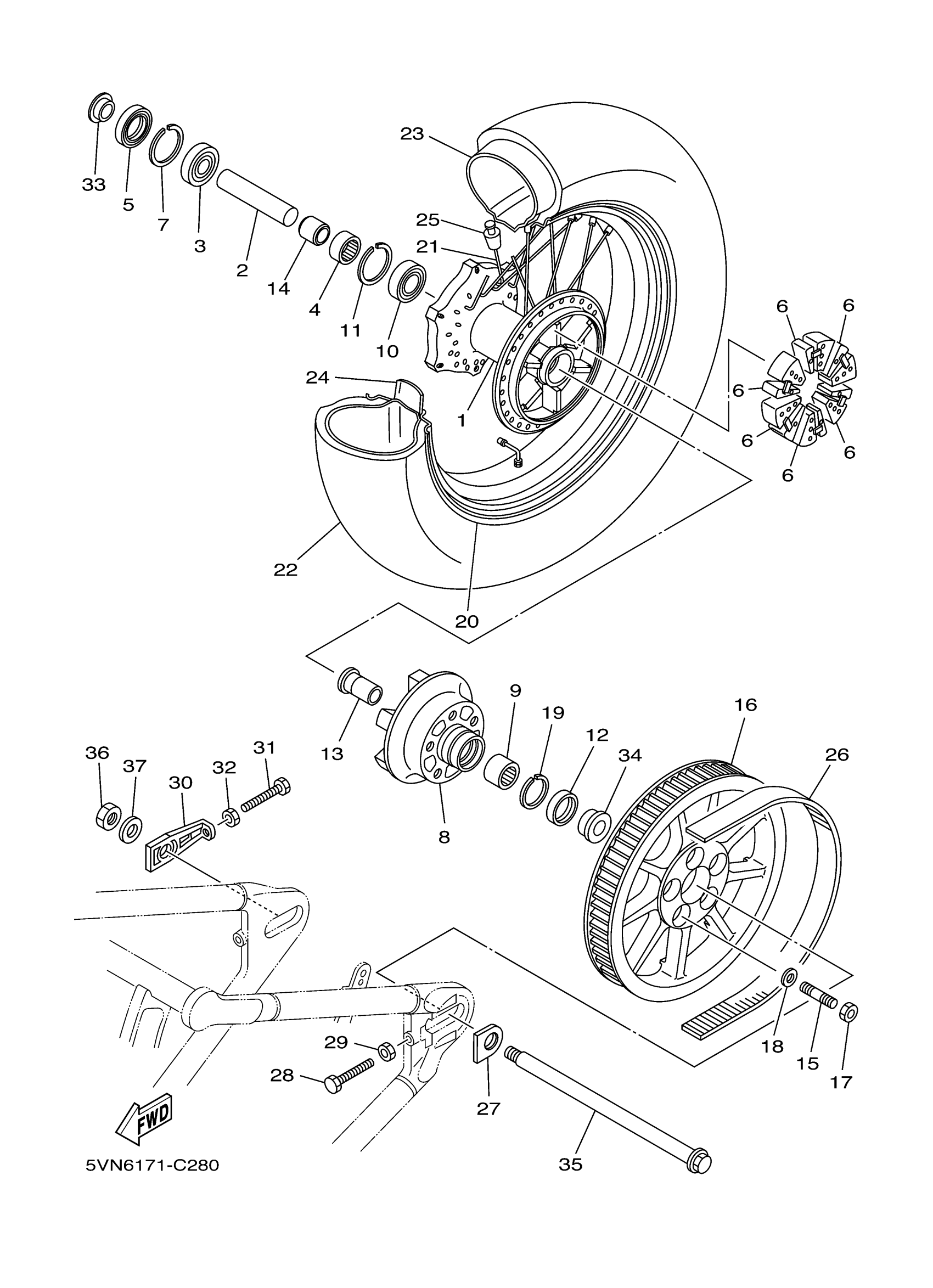 Yamaha XV17ATXL (ROAD STAR SILVERADO) 5VPH 2008 REAR WHEEL Diagram