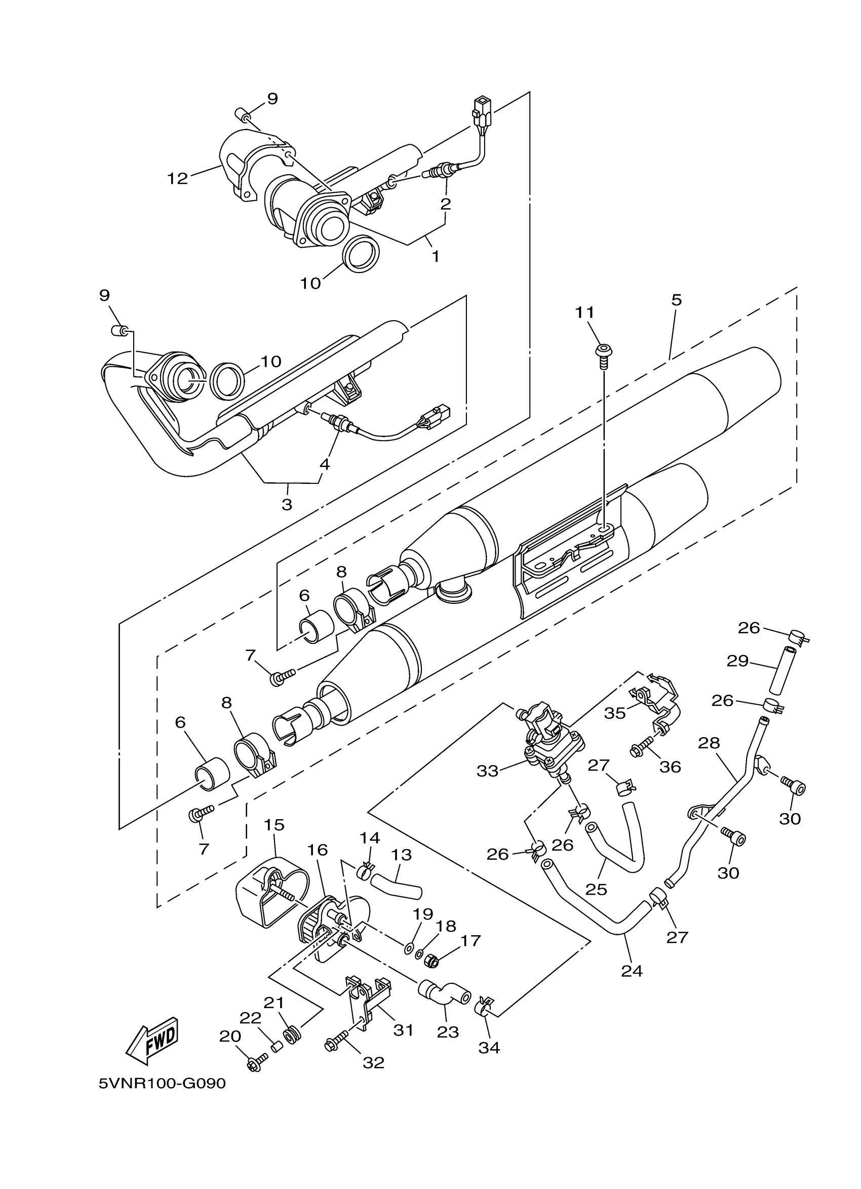 Yamaha XV17ATZW (ROAD STAR SILVERADO) 5VPP 2010 EXHAUST Diagram