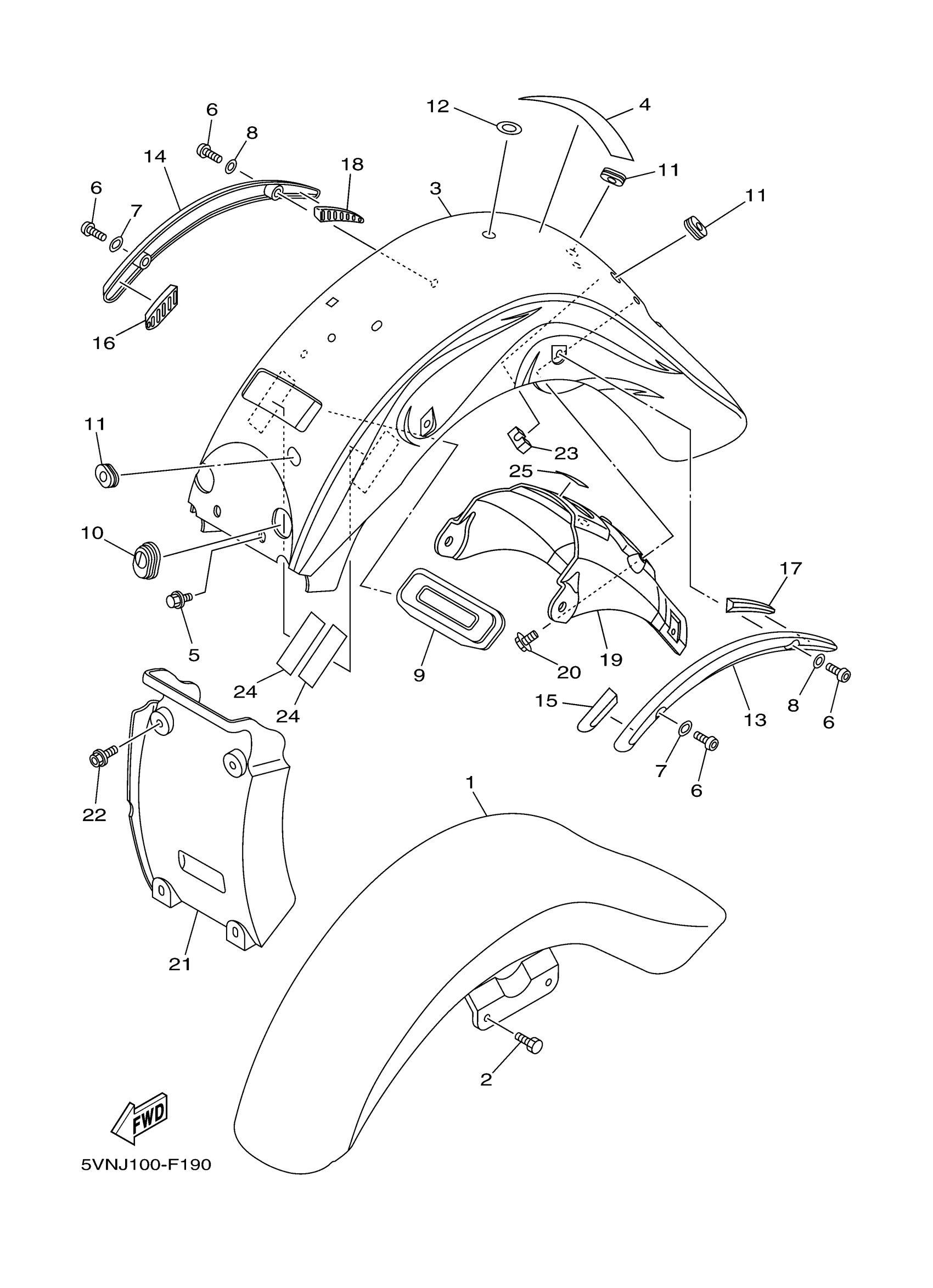 Yamaha XV17AWWC-F (ROAD STAR with flames CA) 5VNK 2007 FENDER Diagram