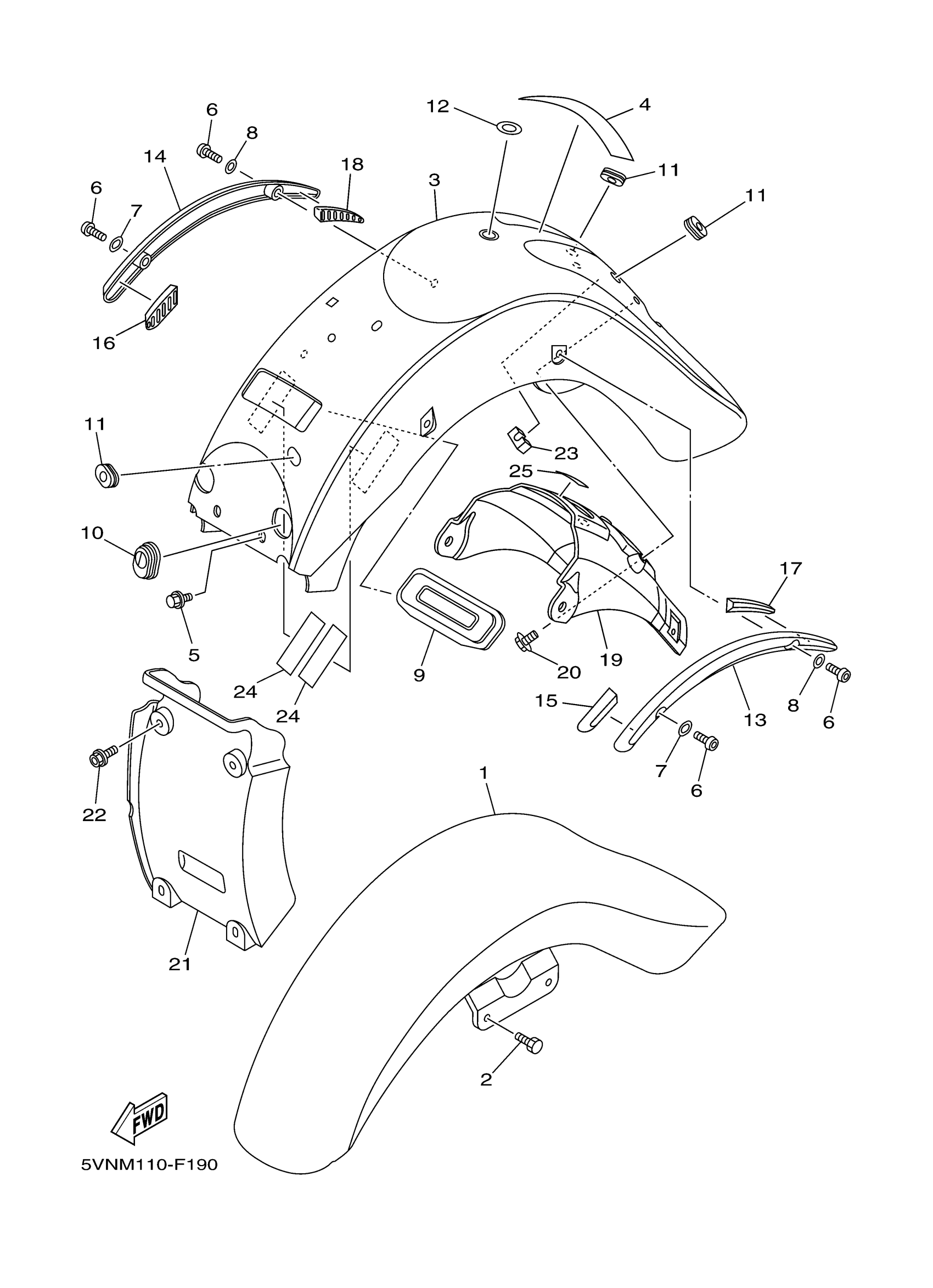 Yamaha XV17AWXL (ROAD STAR) 5VNR 2008 FENDER Diagram