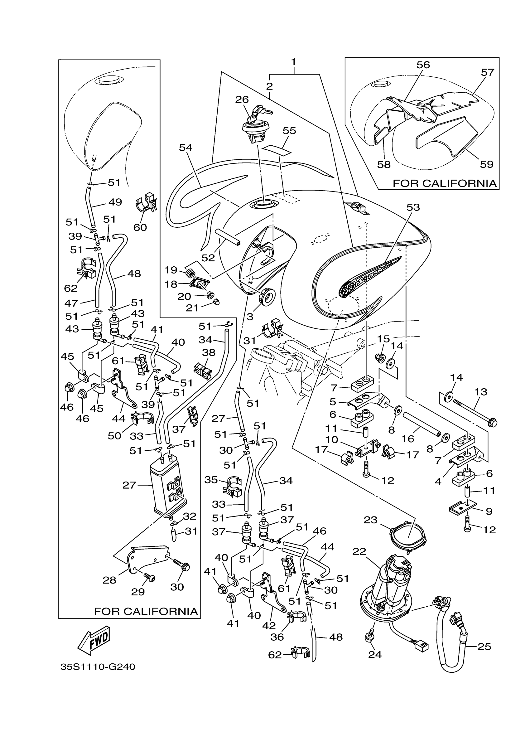 Yamaha XV17AWXW (ROAD STAR) 35S1 2008 FUEL TANK Diagram