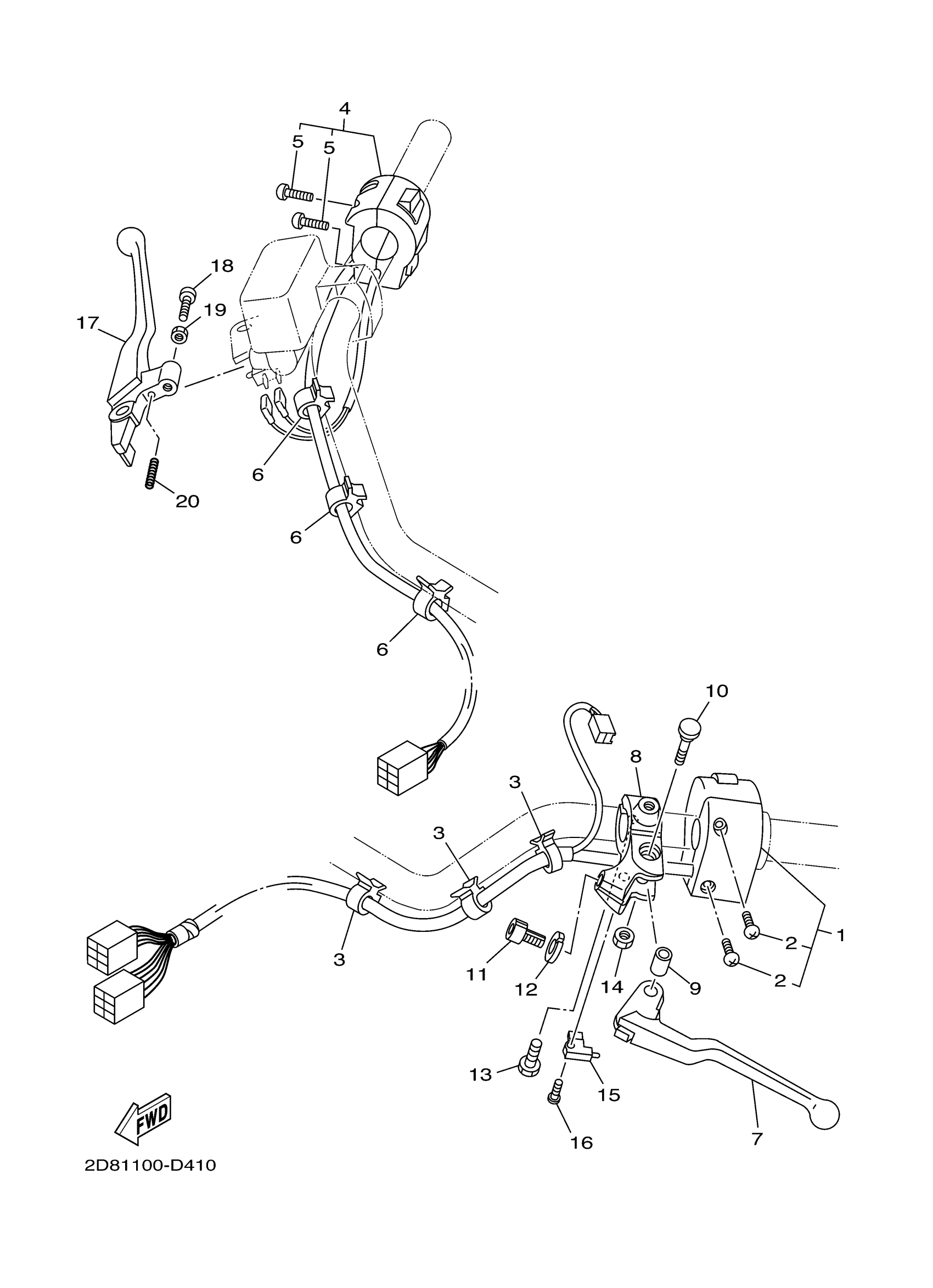 Yamaha XV17PCMVC (ROAD STAR MIDNIGHT WARRIOR CA) 2D85 2006 HANDLE SWITCH LEVER Diagram