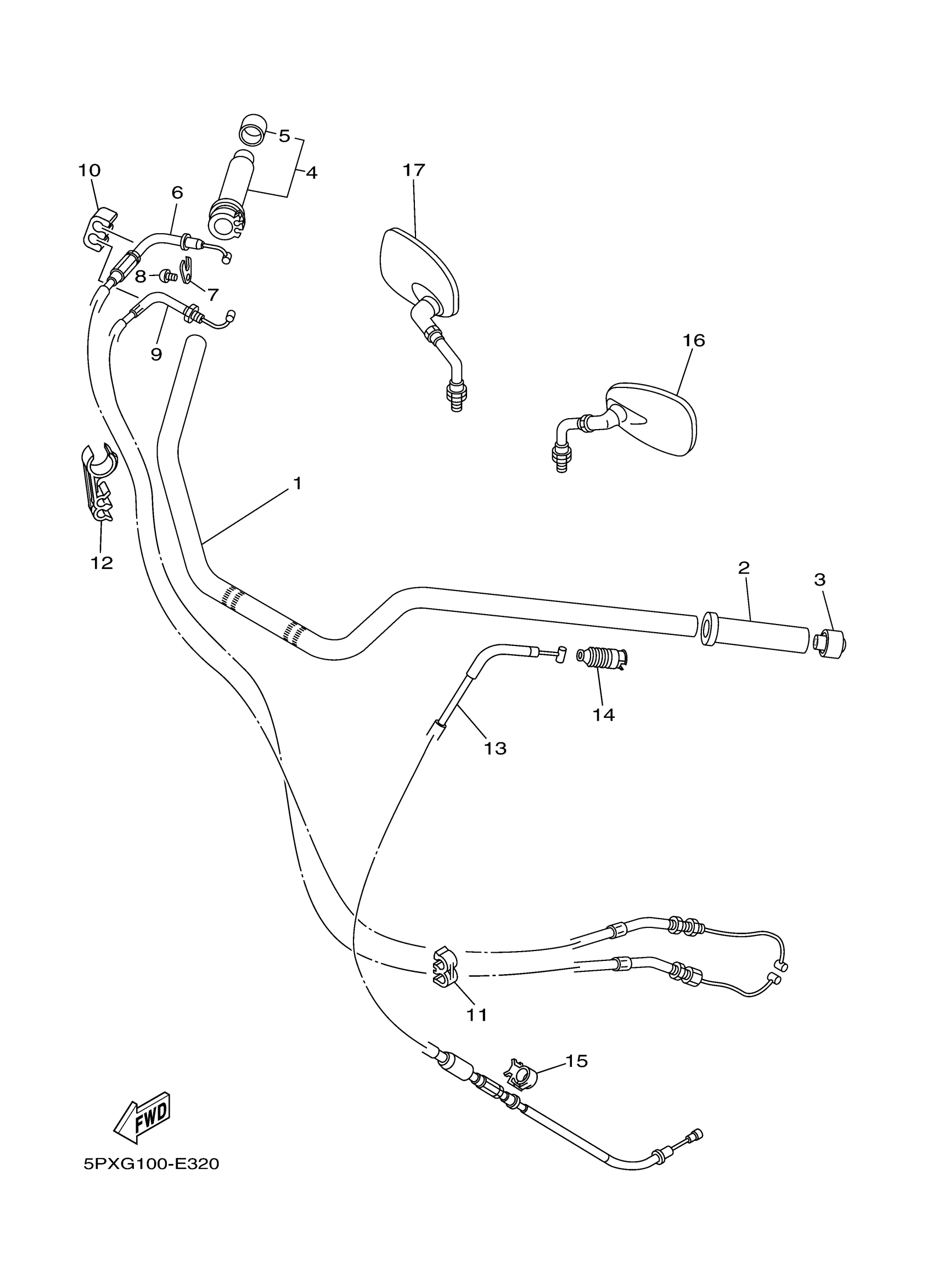 Yamaha XV17PCMYC (ROAD STAR MIDNIGHT WARRIOR CA) 2D8E 2009 STEERING HANDLE CABLE Diagram