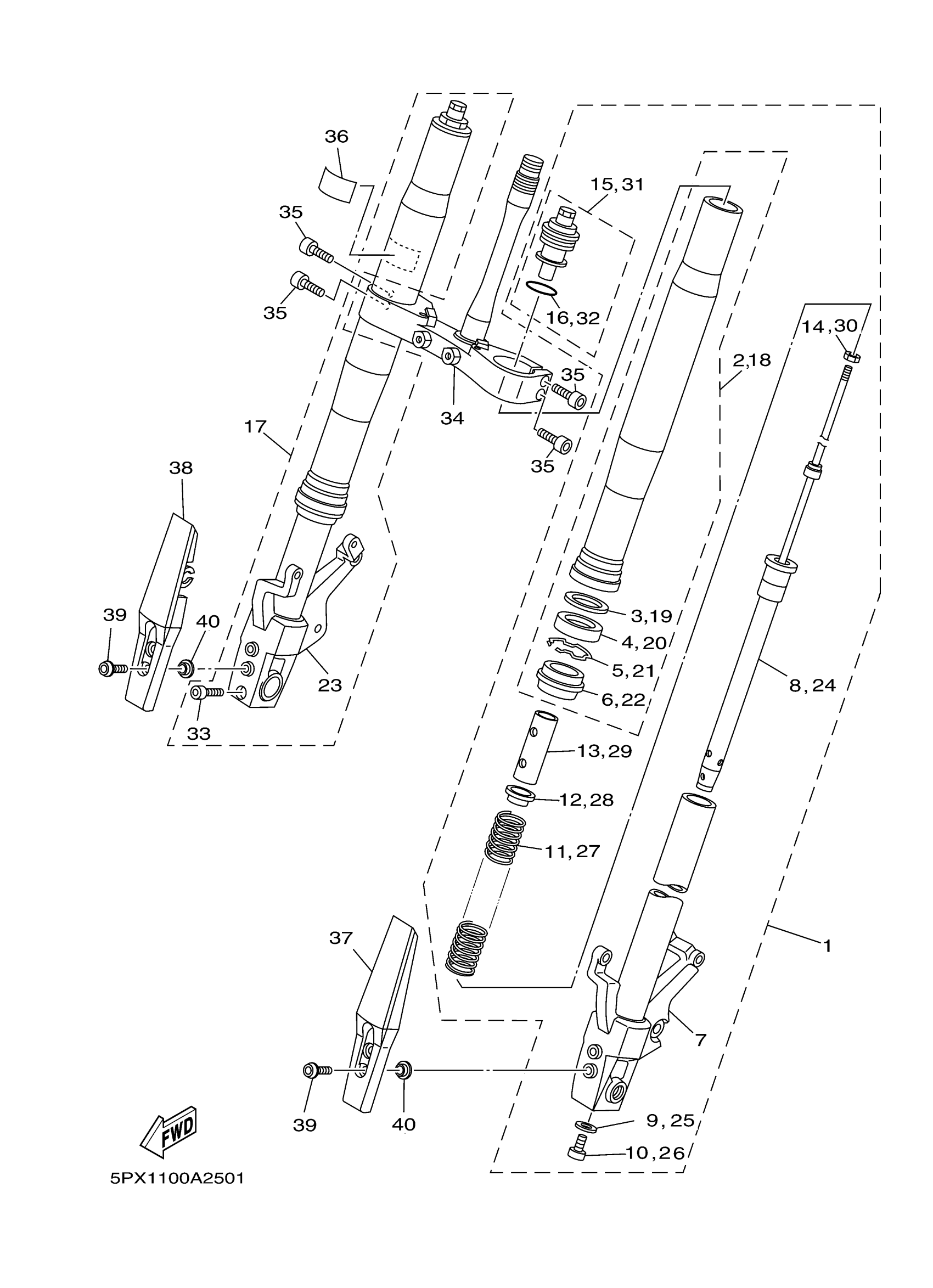 Yamaha XV17PCPC (ROAD STAR WARRIOR CA) 5PX2 2002 FRONT FORK Diagram