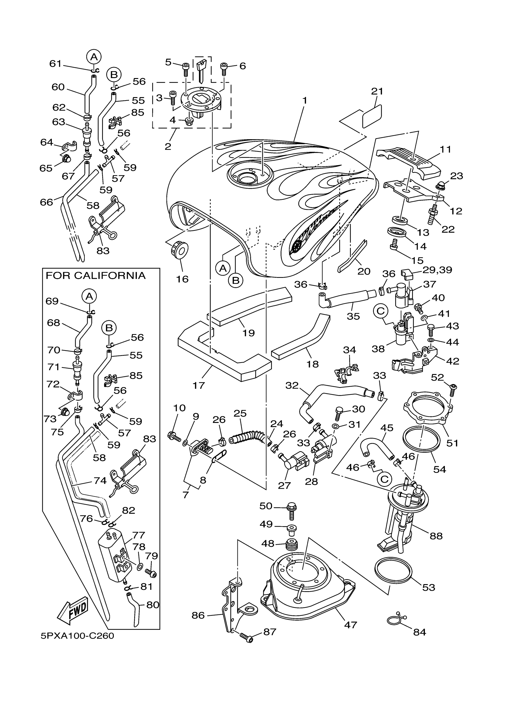 Yamaha XV17PCSC (ROAD STAR WARRIOR CA) 5PXB 2004 FUEL TANK Diagram