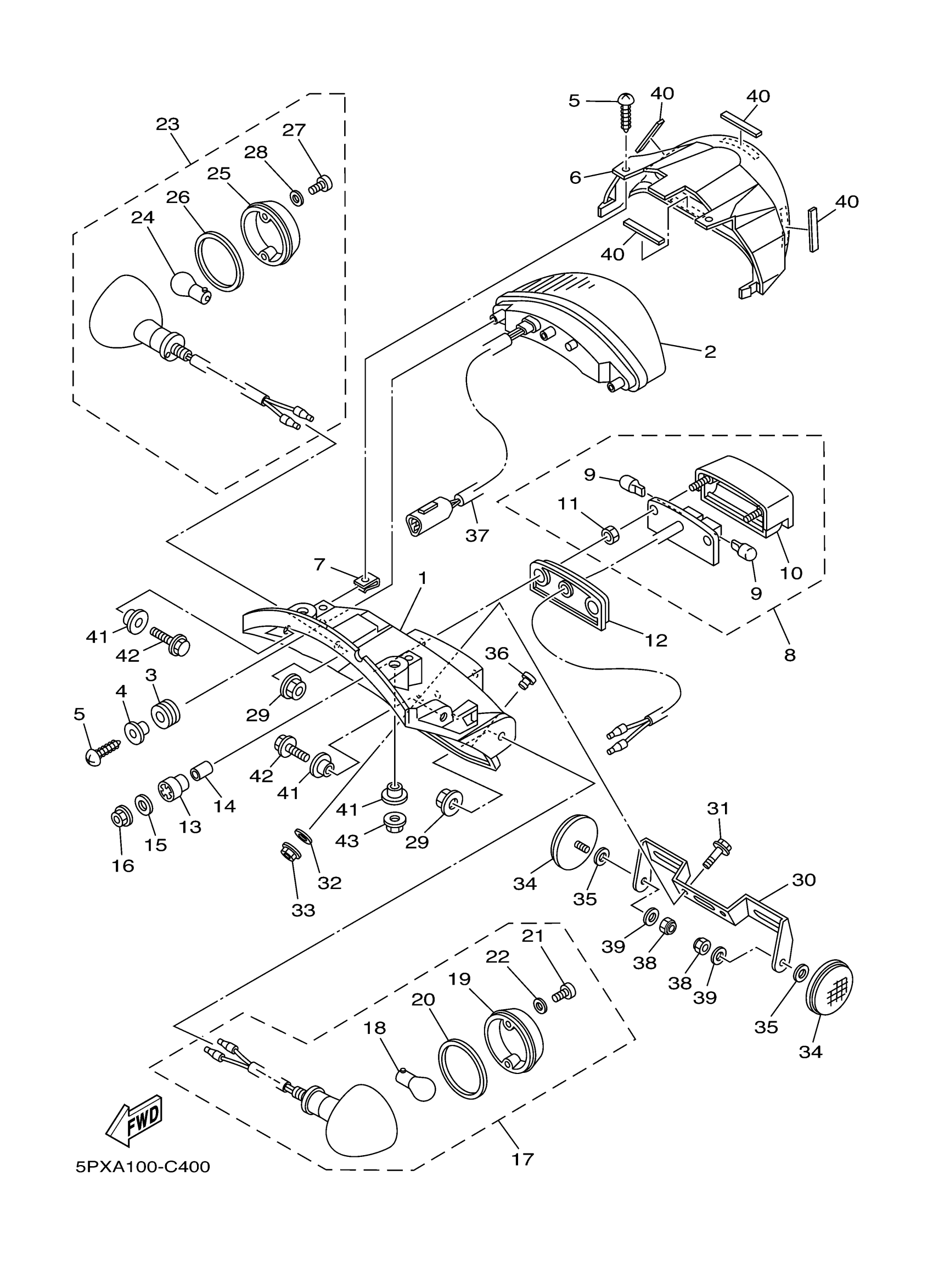 Yamaha XV17PCTC-F (ROAD STAR WARRIOR w/flames CA) 5PXE 2005 TAILLIGHT Diagram