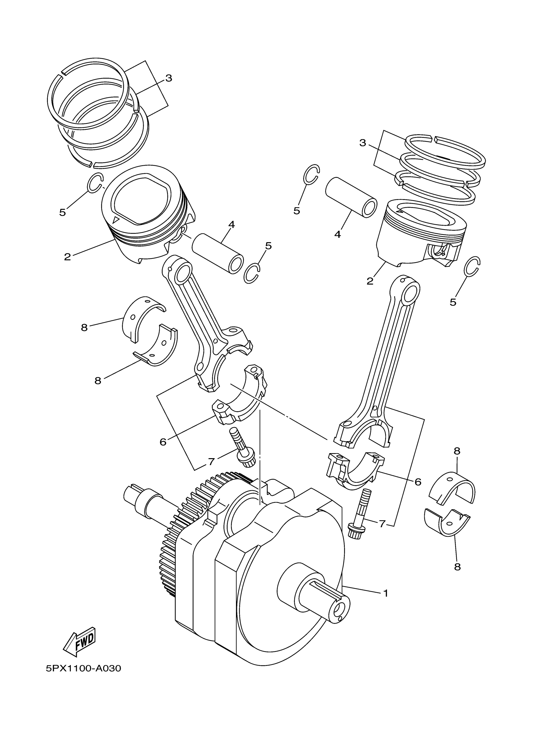 Yamaha XV17PCTCB (ROAD STAR MIDNIGHT WARRIOR CA) 2D82 2005 CRANKSHAFT PISTON Diagram