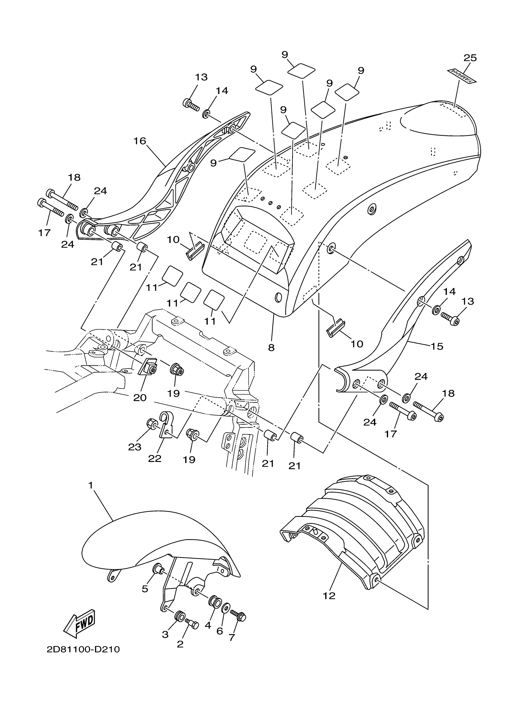 Yamaha XV17PCTCB (ROAD STAR MIDNIGHT WARRIOR CA) 2D82 2005 FENDER Diagram