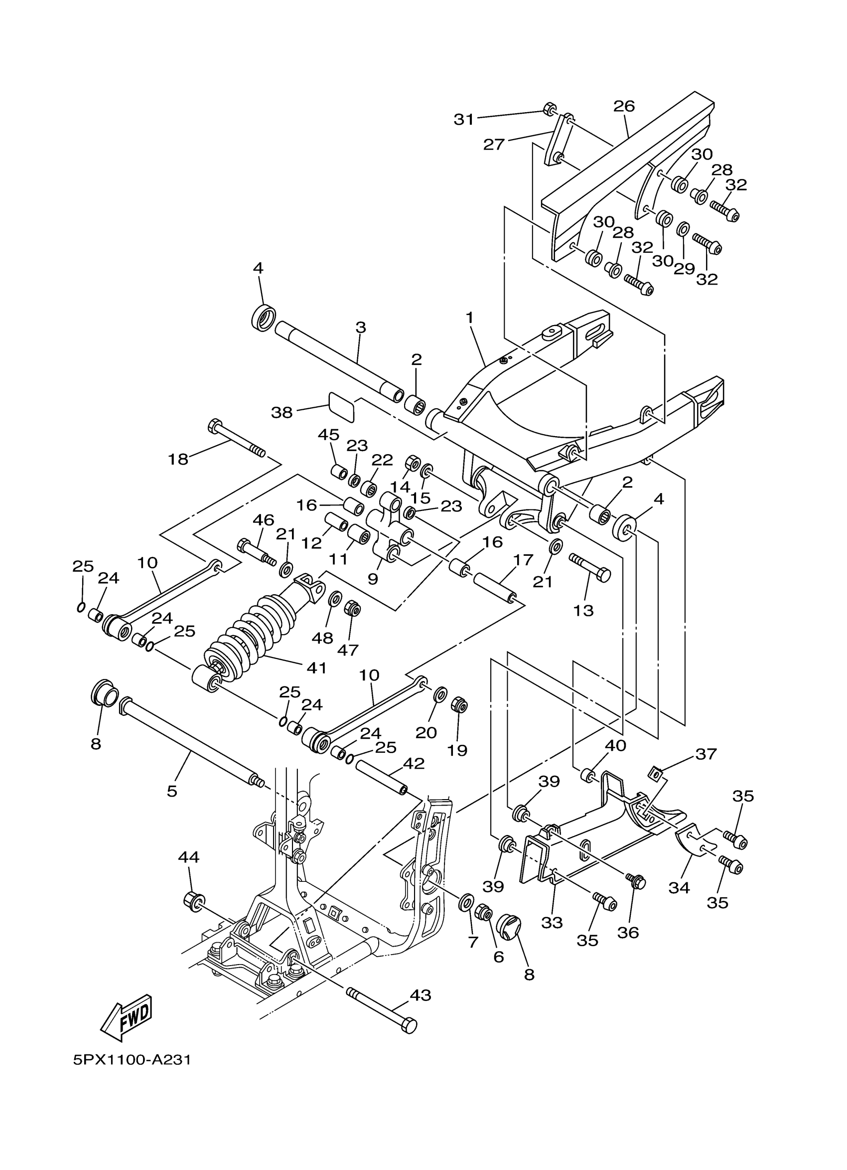 Yamaha XV17PCTCB (ROAD STAR MIDNIGHT WARRIOR CA) 2D82 2005 REAR ARM SUSPENSION Diagram