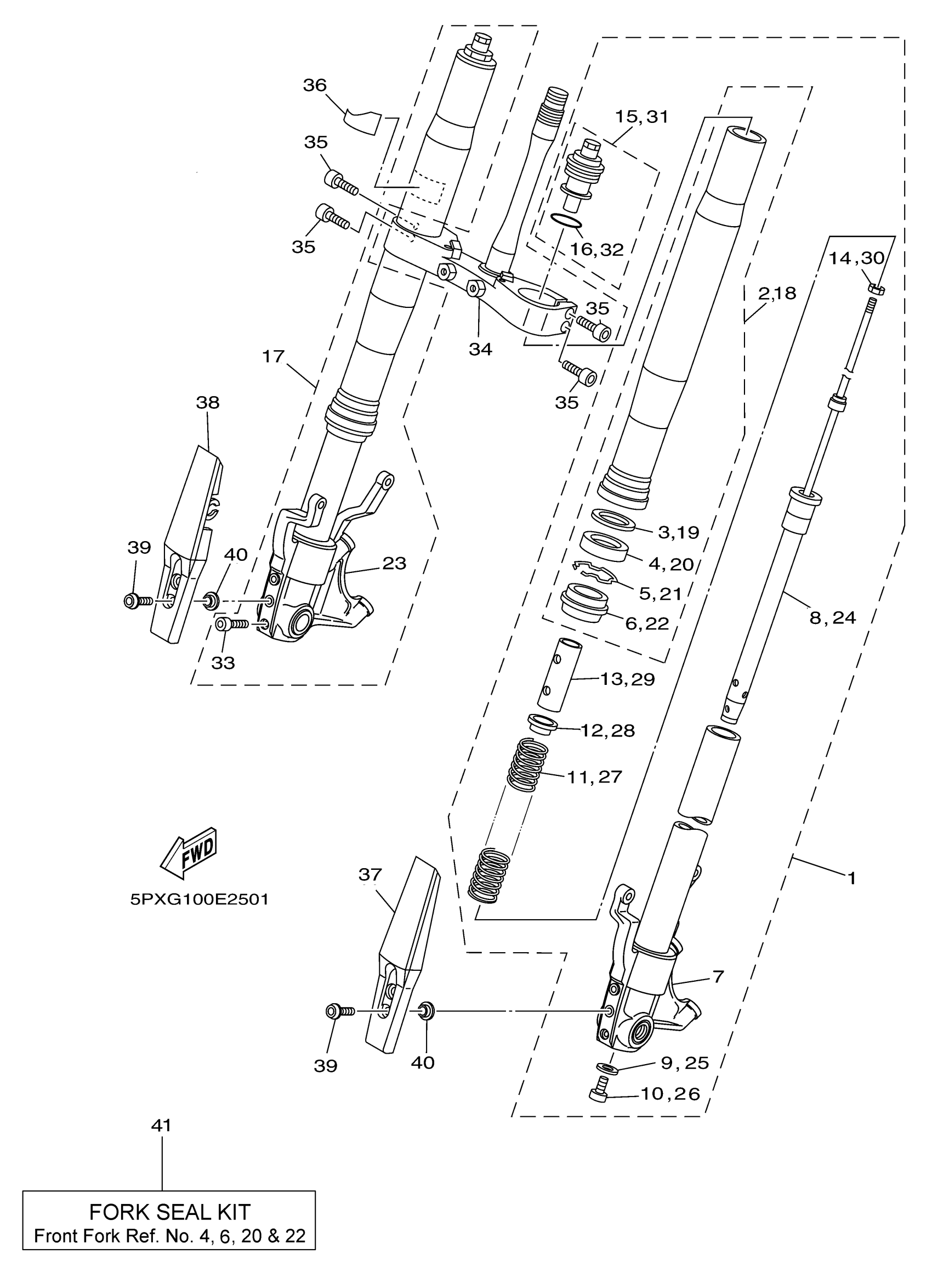 Yamaha XV17PCXR (ROAD STAR WARRIOR) 5PXN 2008 FRONT FORK Diagram