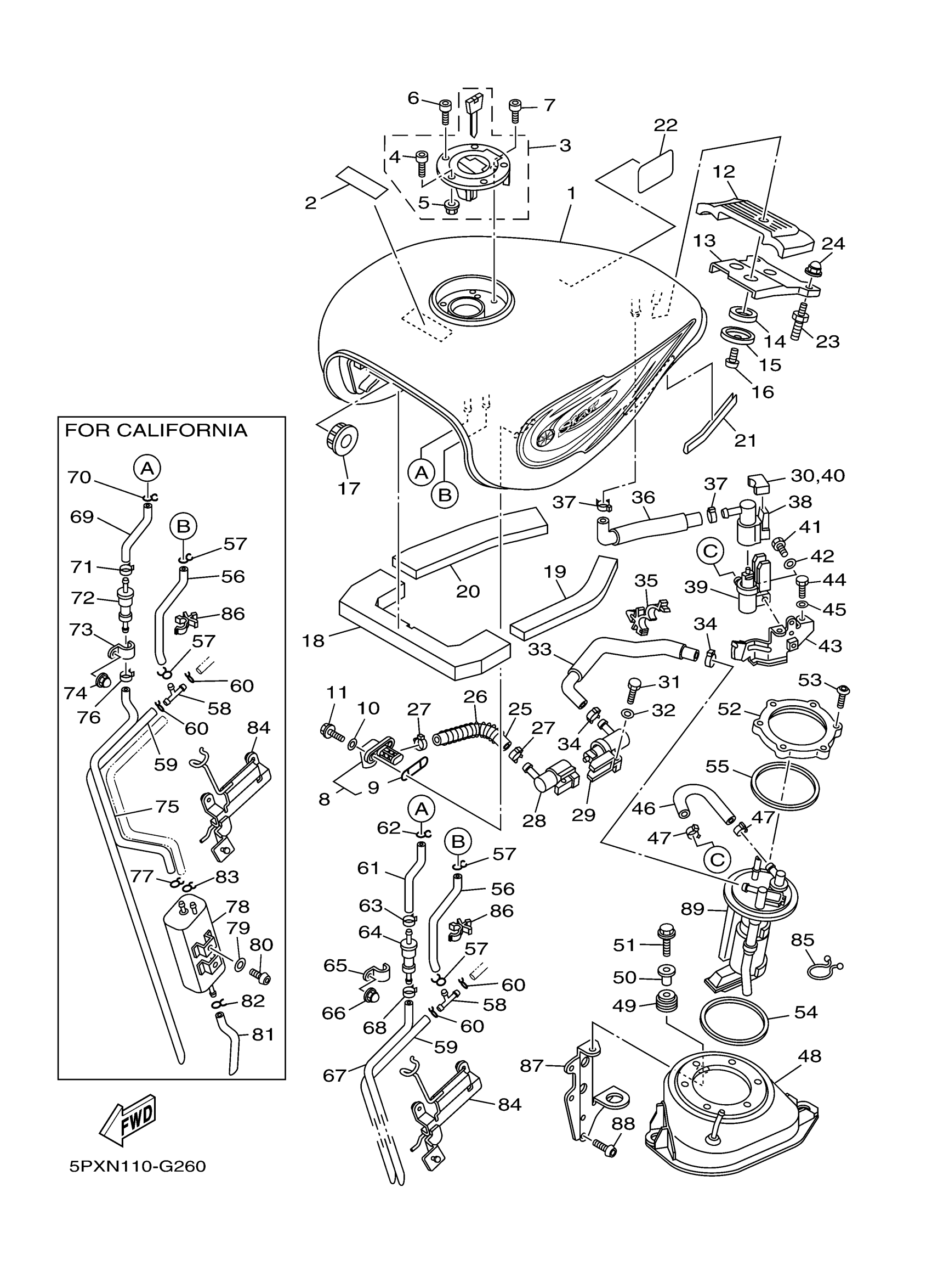Yamaha XV17PCXR (ROAD STAR WARRIOR) 5PXN 2008 FUEL TANK Diagram