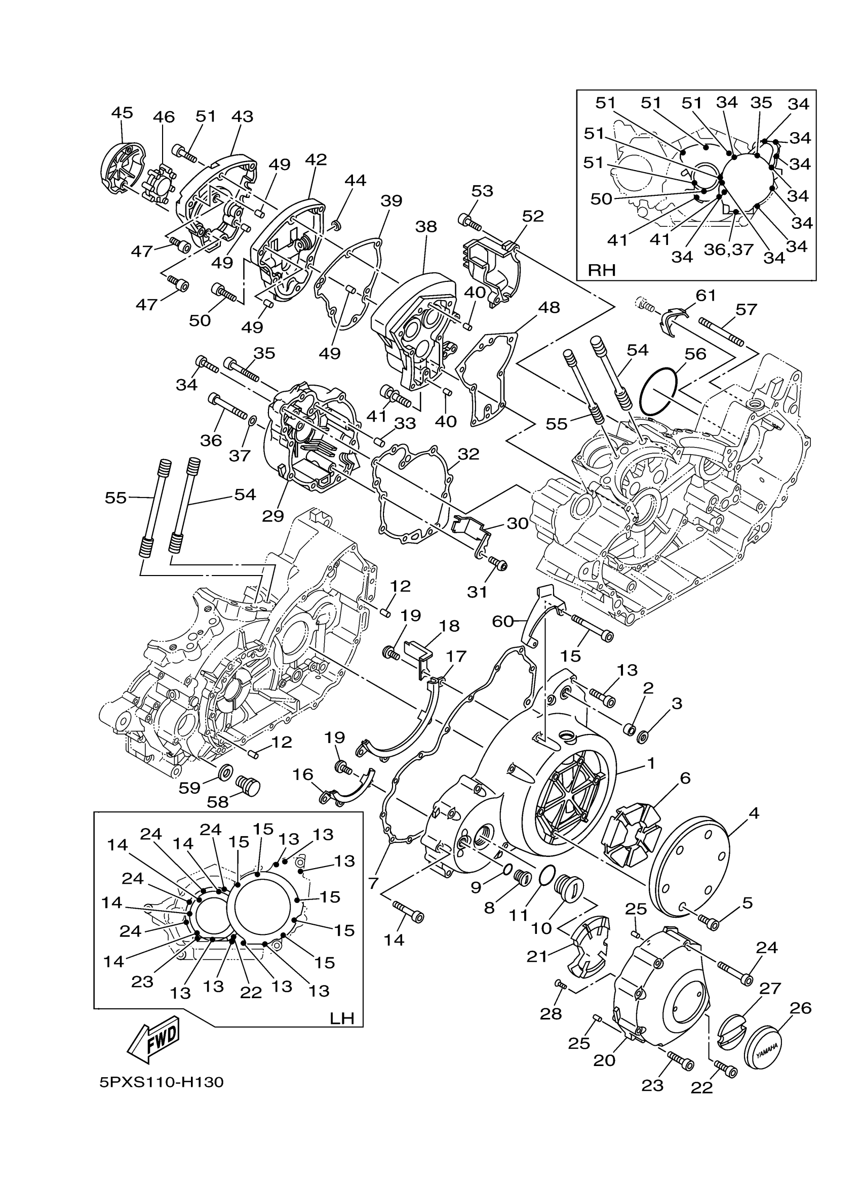 Yamaha XV17PCYS (ROAD STAR WARRIOR) 5PXS 2009 CRANKCASE COVER 1 Diagram