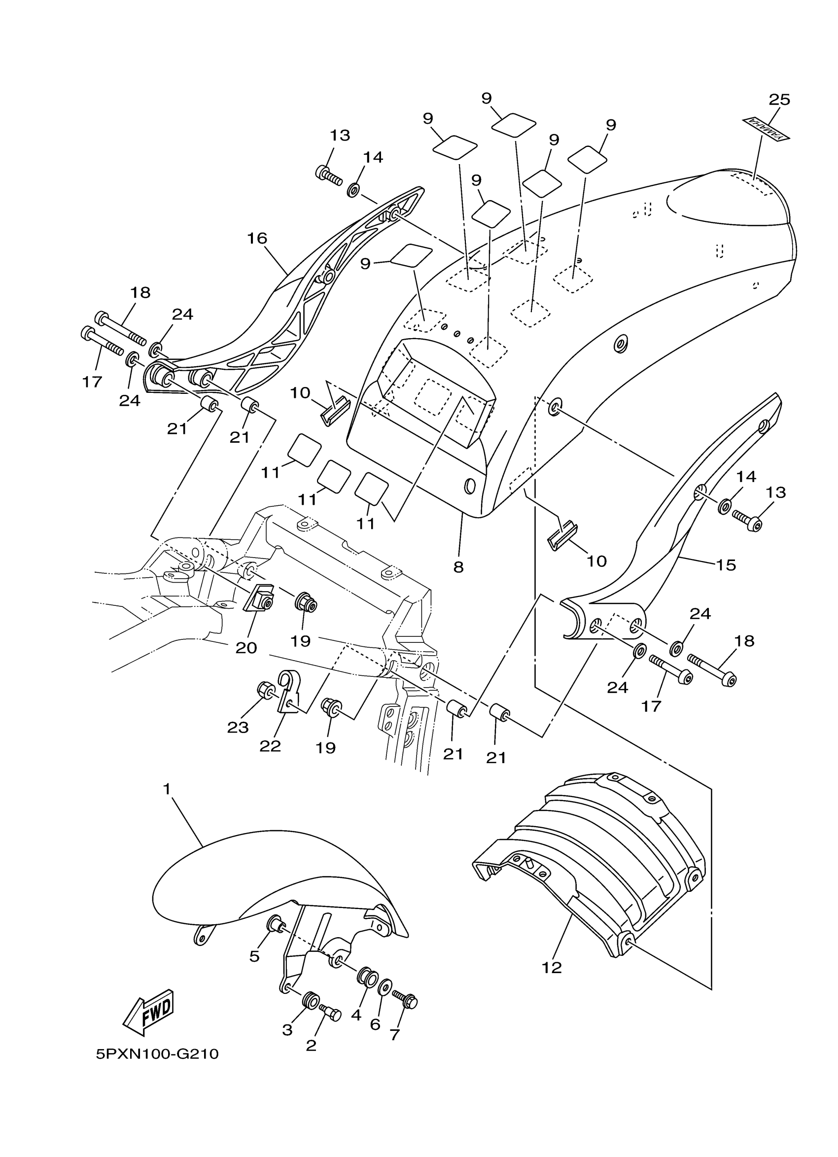 Yamaha XV17PCYS (ROAD STAR WARRIOR) 5PXS 2009 FENDER Diagram
