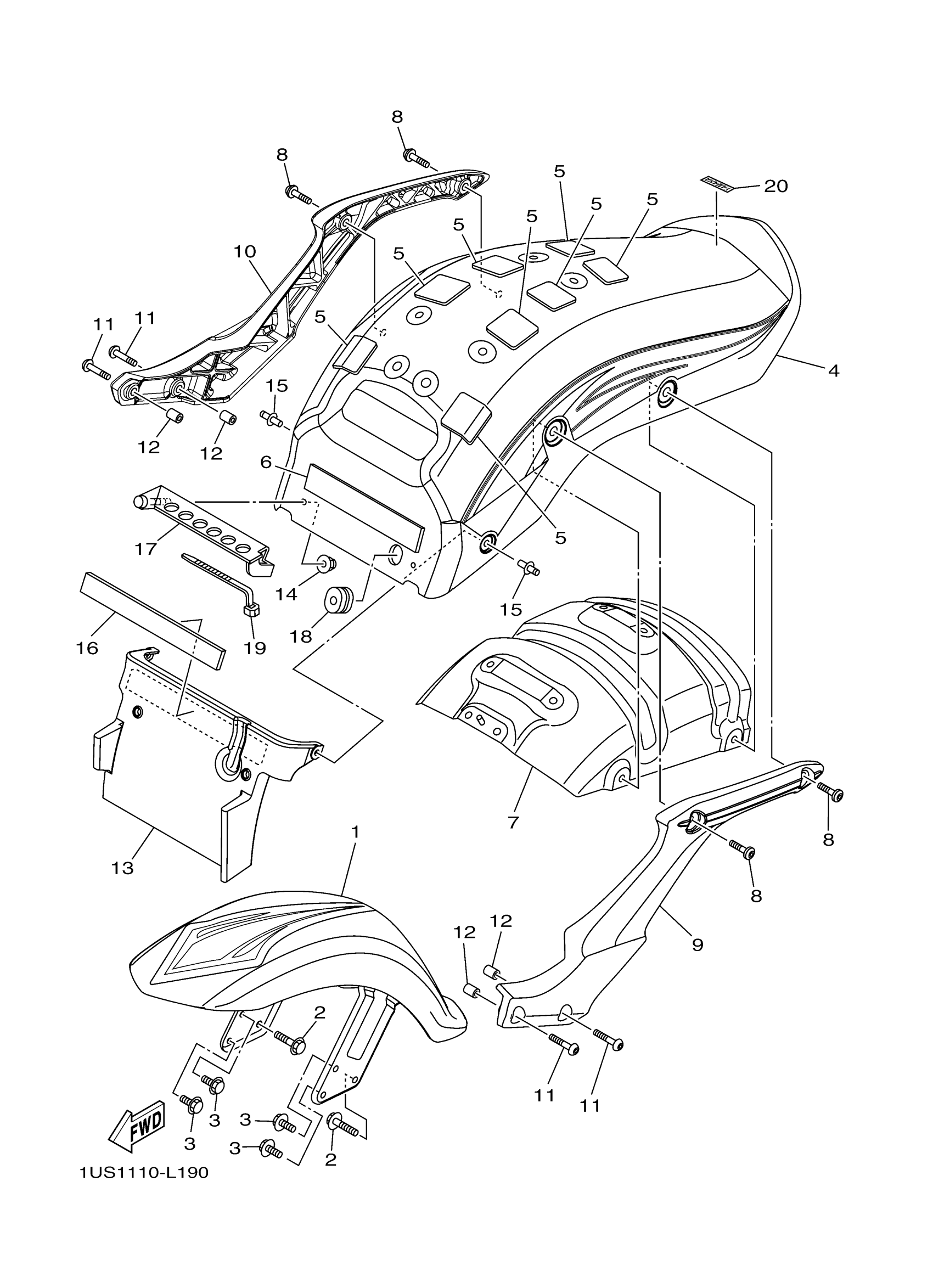 Yamaha XV19CBO (RAIDER SCL) 1US1 2012 FENDER Diagram