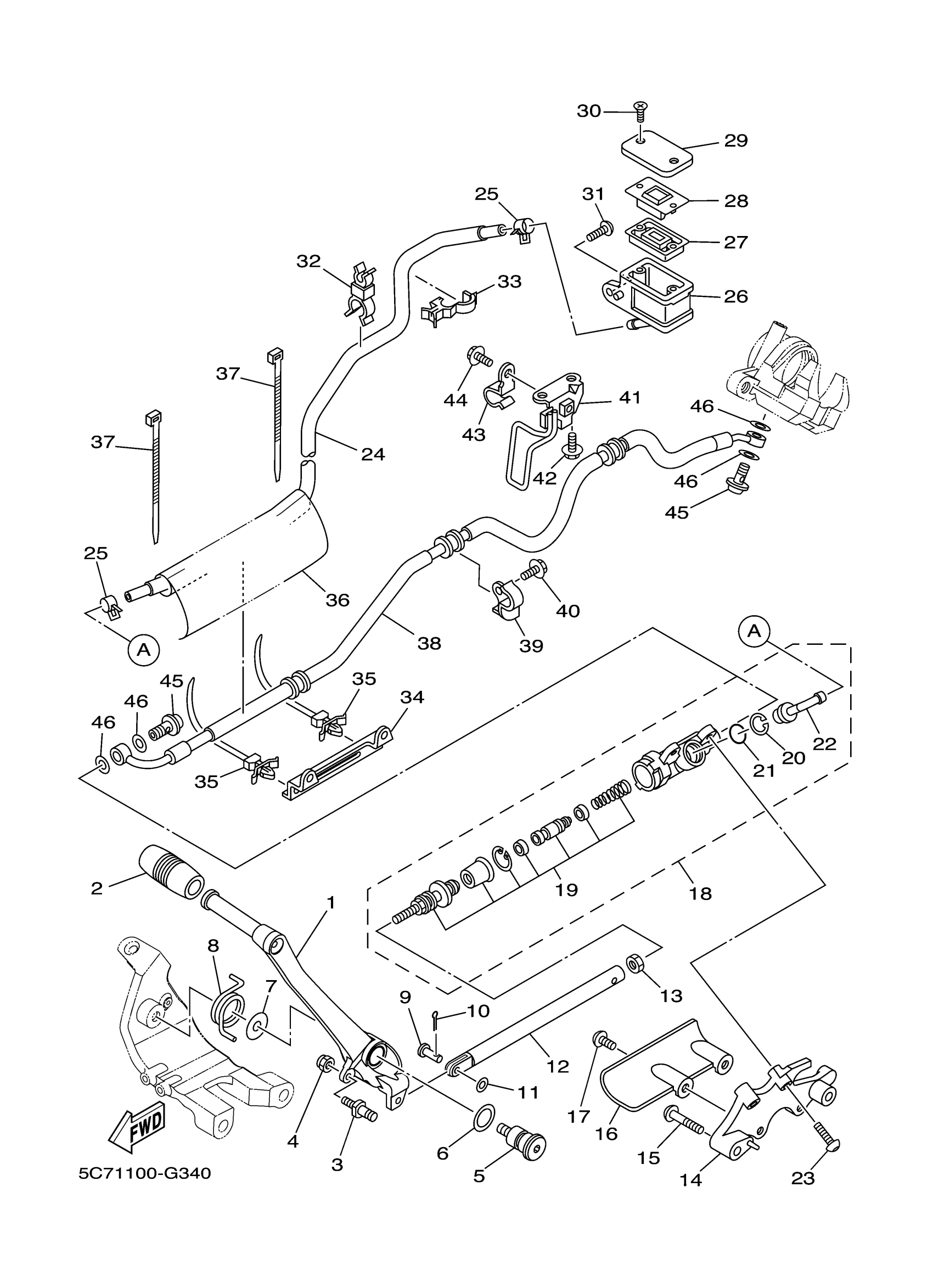 Yamaha XV19CFCB (RAIDER BULLET COWL CA) 30BW 2015 REAR MASTER CYLINDER Diagram