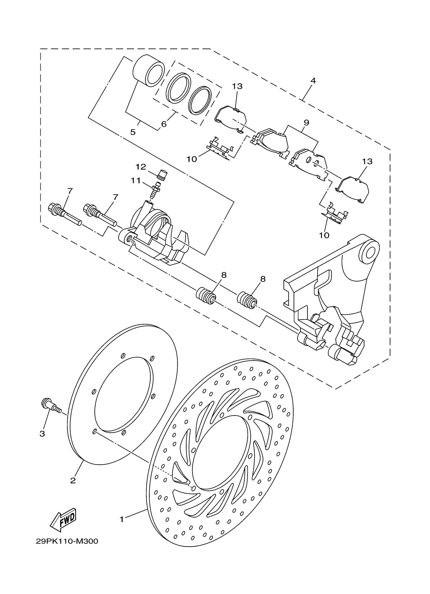 Yamaha XV19CSFR (RAIDER S) 29PS 2015 REAR BRAKE CALIPER Diagram