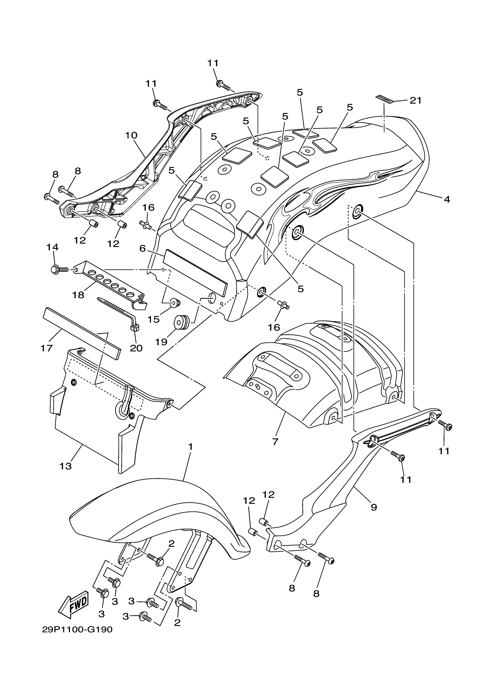 Yamaha XV19CSXR (RAIDER S with Flames) 29P1 2008 FENDER Diagram