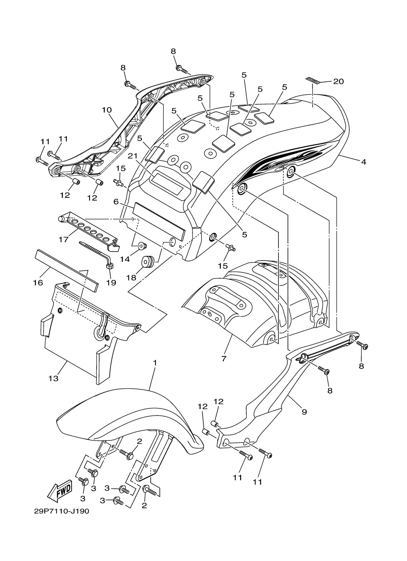 Yamaha XV19CSZL (RAIDER S) 29P7 2010 FENDER Diagram