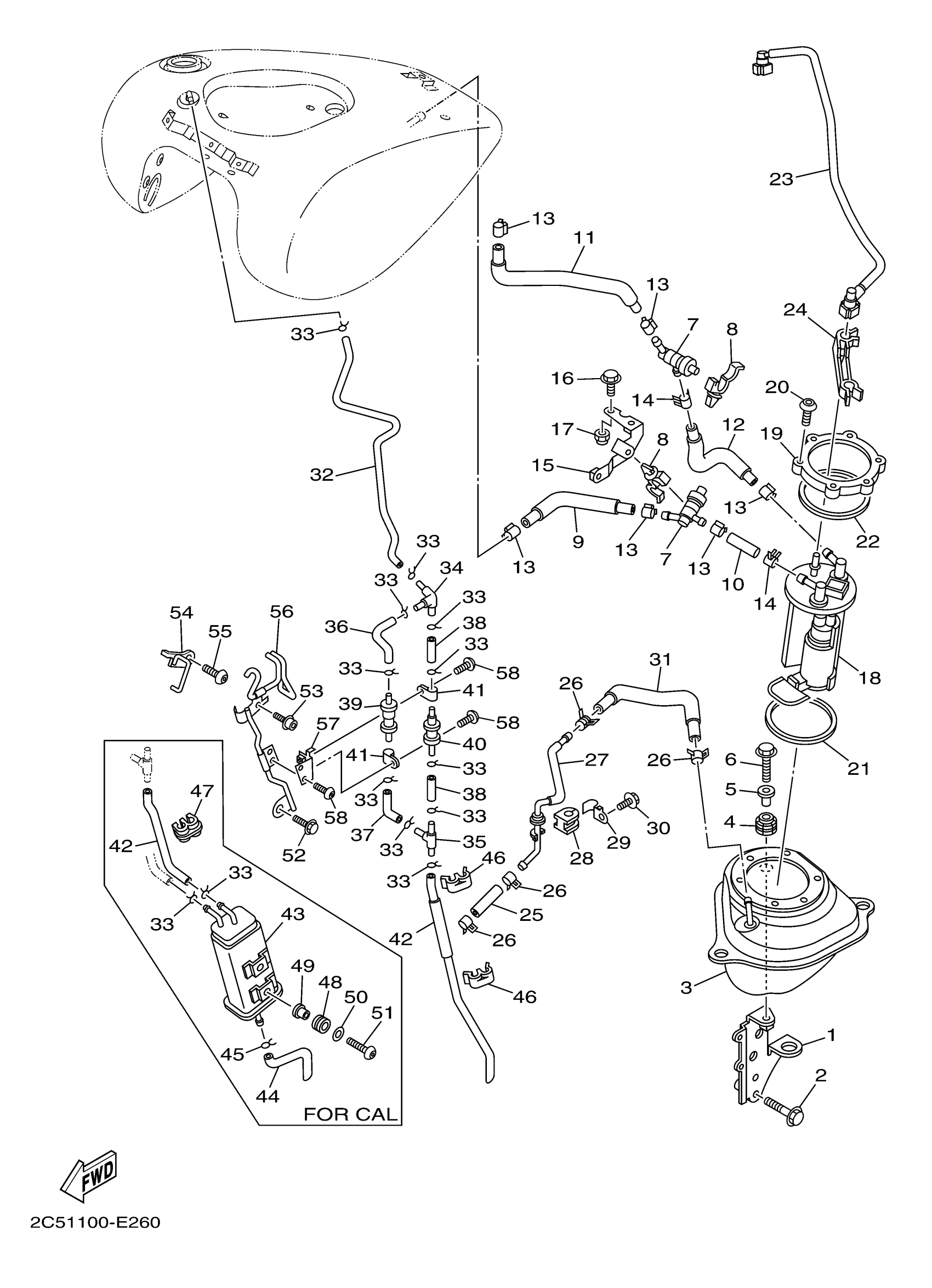 Yamaha XV19CTSVC (STRATOLINER S CA) 2C52 2006 FUEL TANK 2 Diagram