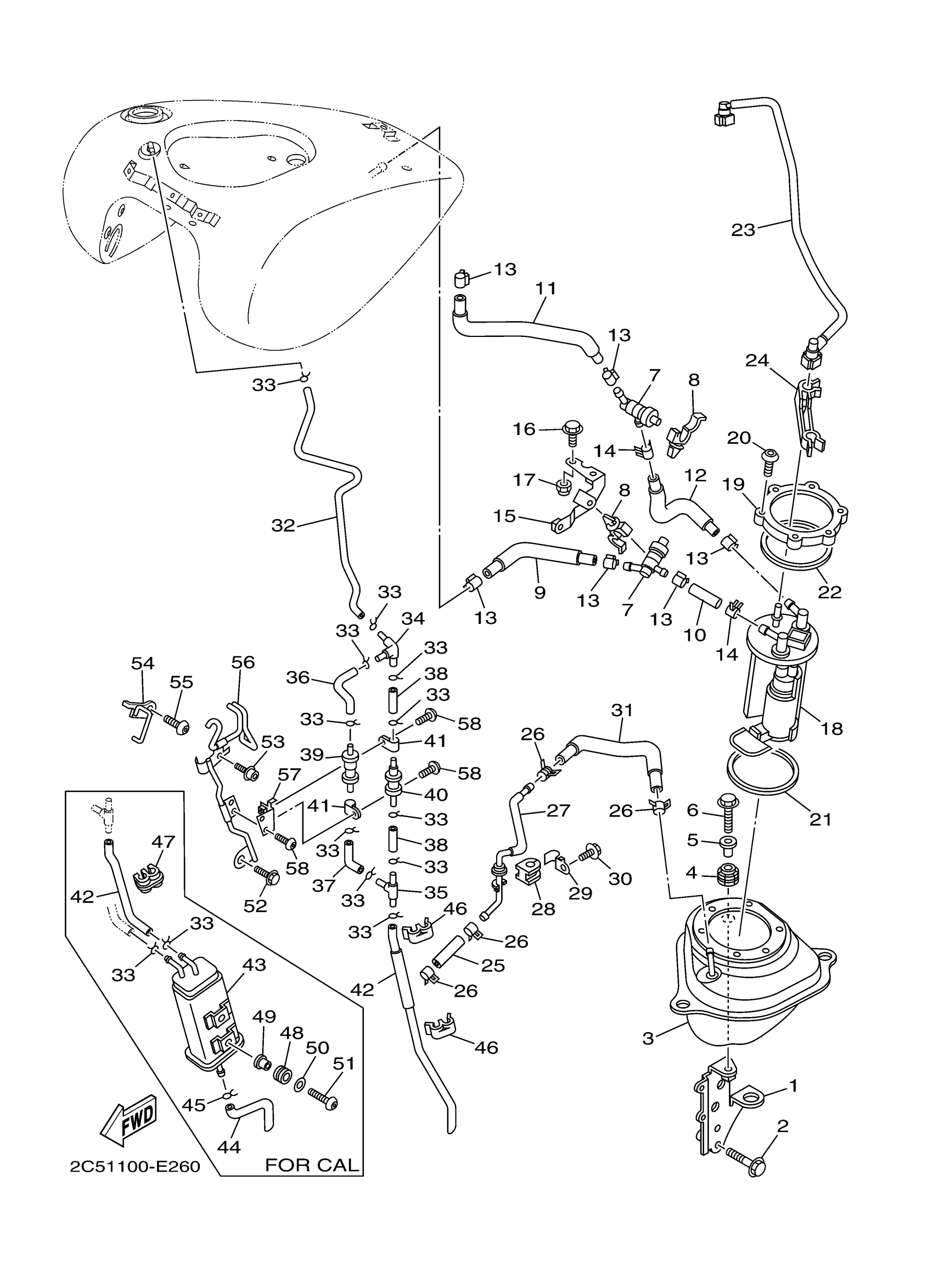 Yamaha XV19CTVC (STRATOLINER CA) 4P02 2006 FUEL TANK 2 Diagram