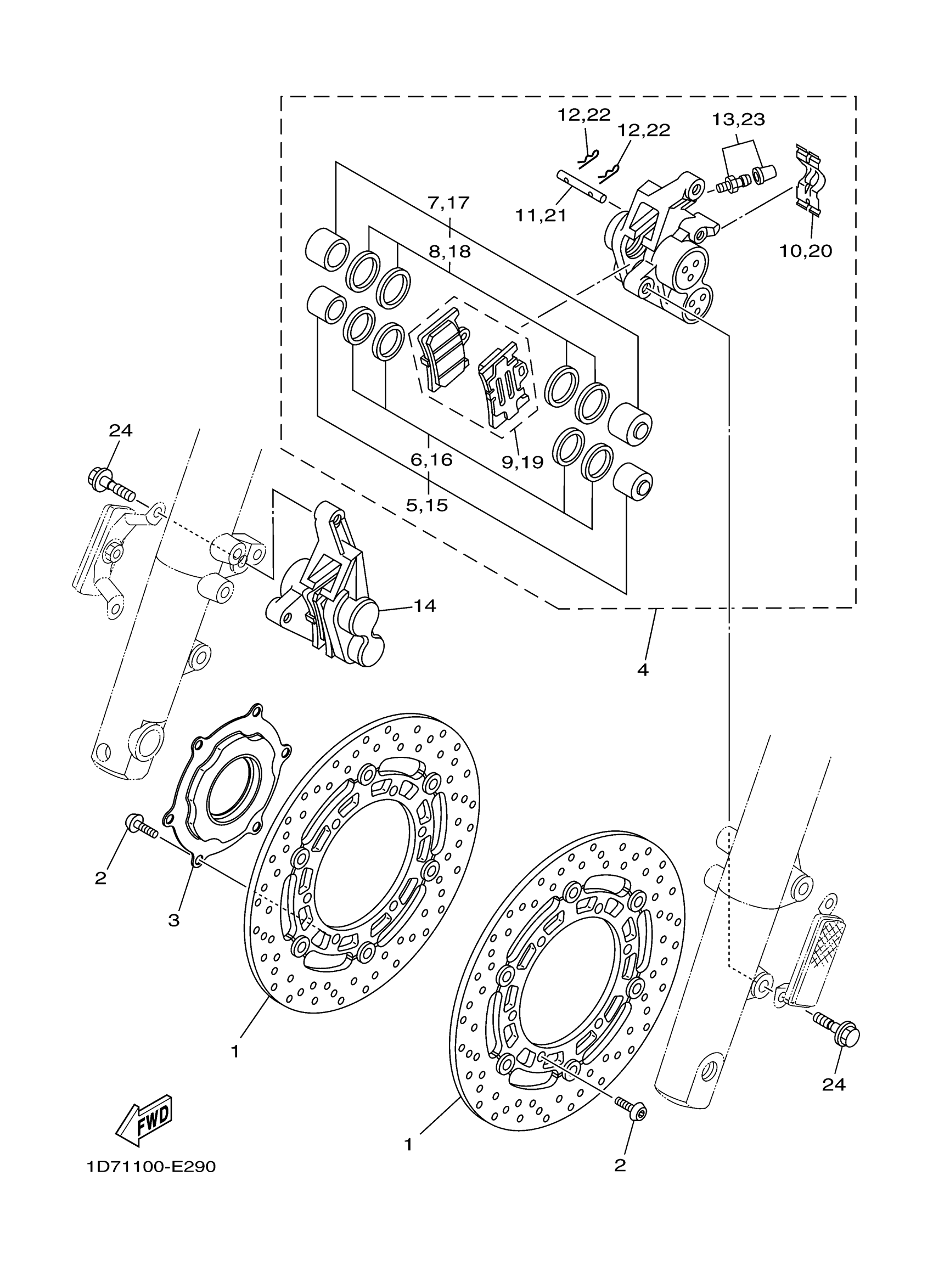 Yamaha XV19SZL (ROADLINER S) 1D7D 2010 FRONT BRAKE CALIPER Diagram