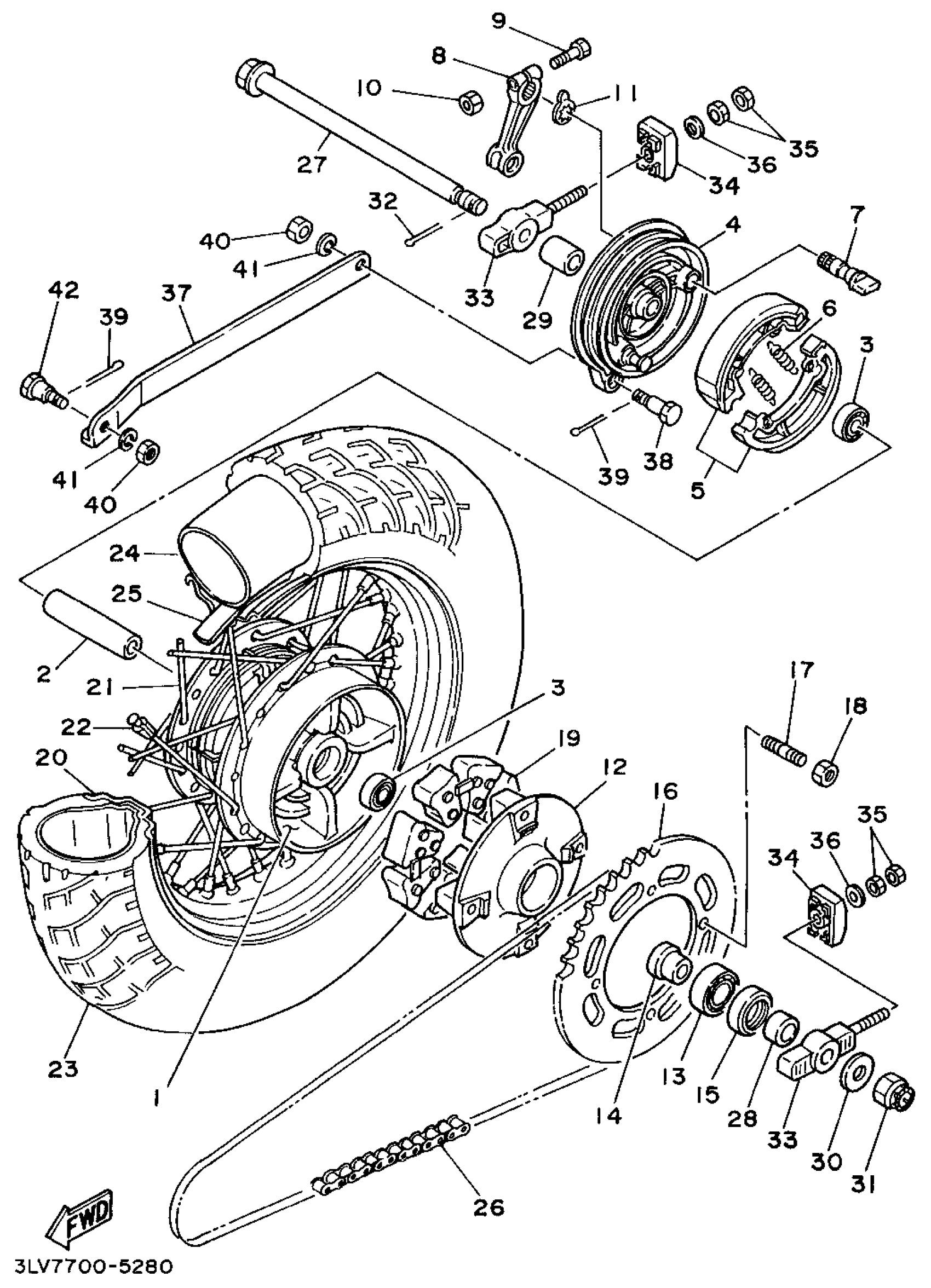 Yamaha XV250GC (VIRAGO 250 CA) 1995 REAR WHEEL Diagram