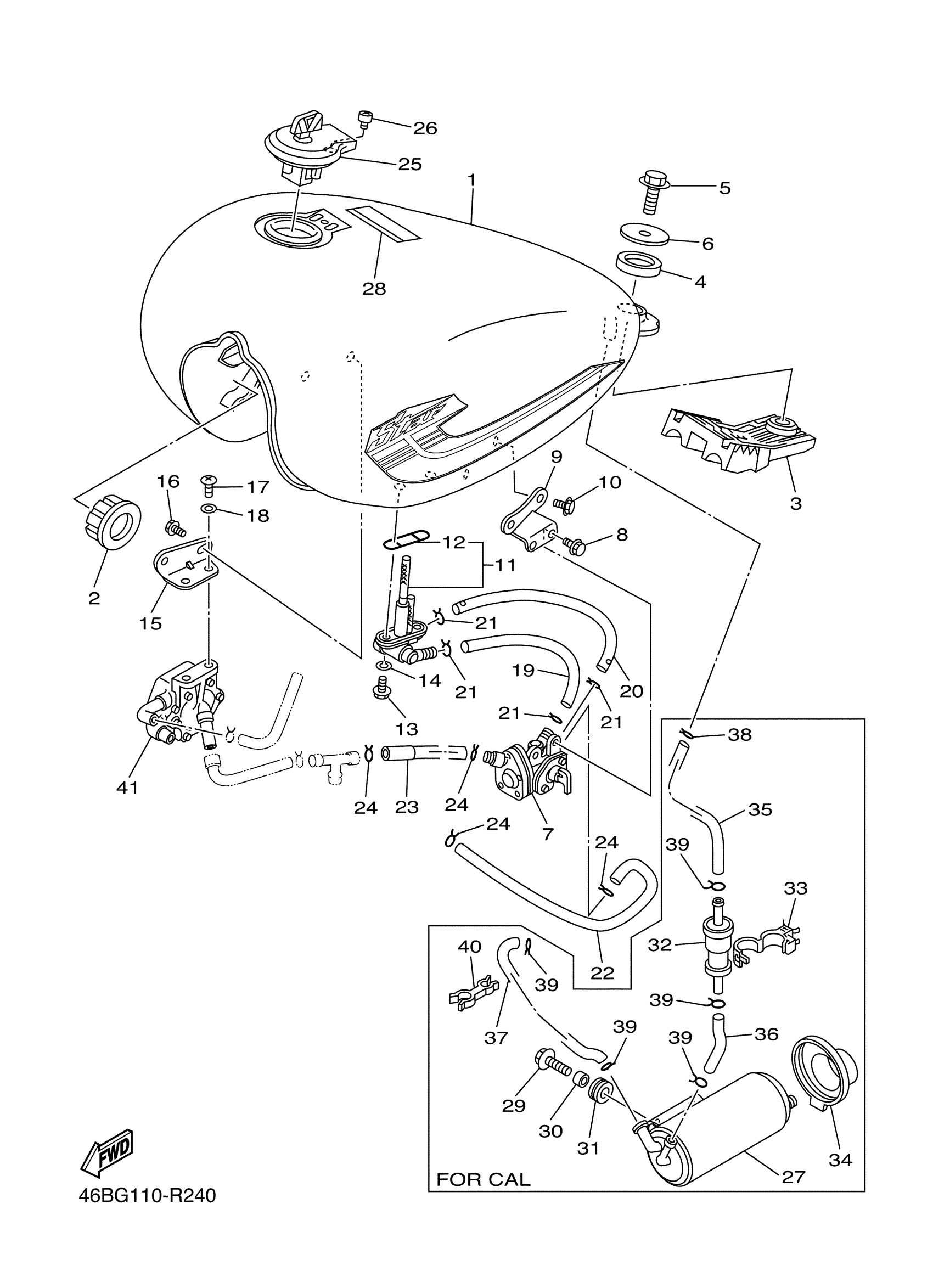 Yamaha XV250GW (XV250) 46BG0 2016 FUEL TANK Diagram