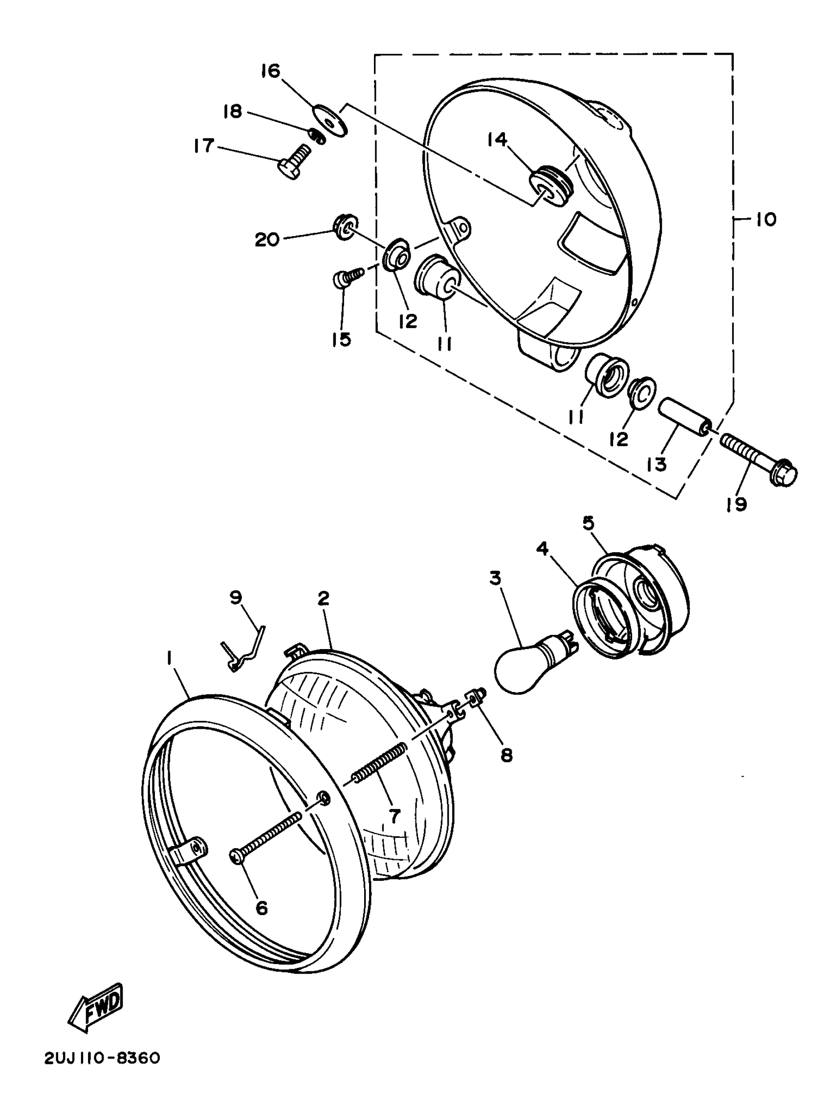 Yamaha XV250KC (VIRAGO 250 CA) 1998 HEADLIGHT Diagram